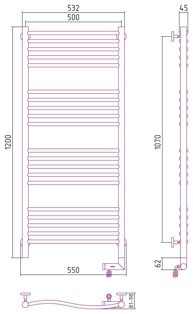 Комплектация: Полотенцесушитель, провод с вилкой, крепление