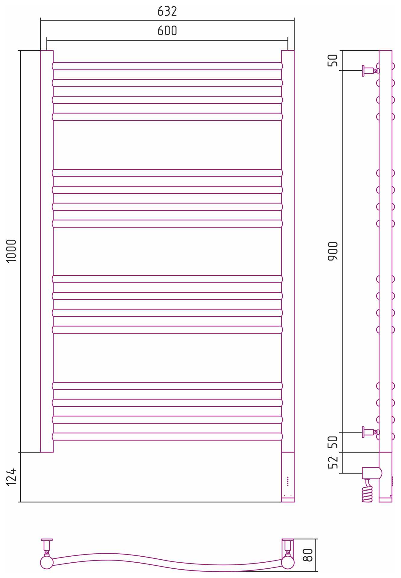 Комплектация: Полотенцесушитель, провод с вилкой, крепление