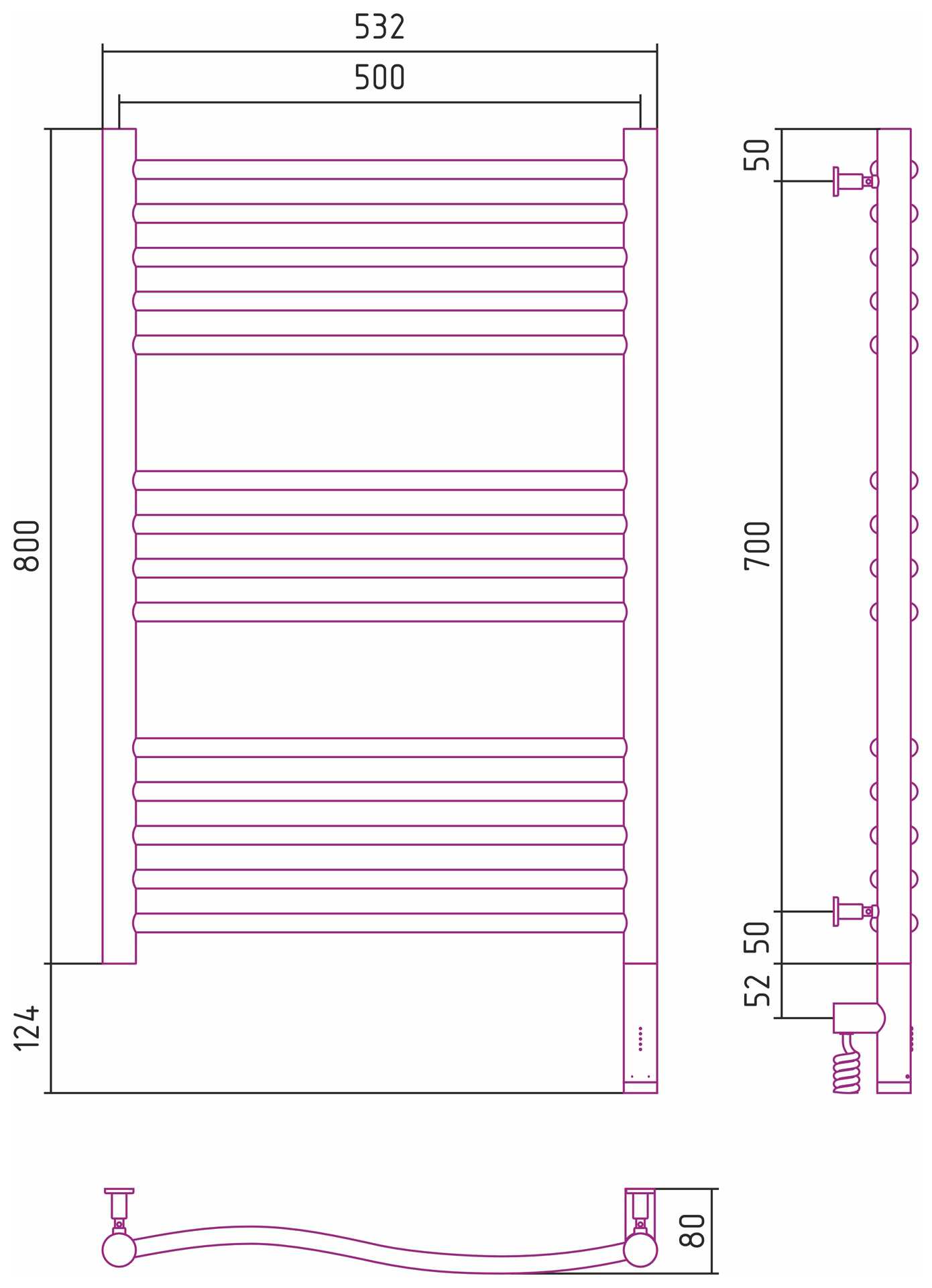 Полотенцесушитель электрический Сунержа Флюид 3.0 800x500 МЭМ правый, хром (00-5821-8050)
