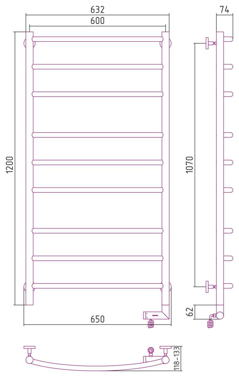Полотенцесушитель электрический Сунержа Галант 2.0 1200x600 МЭМ правый, хром (00-5201-1260)