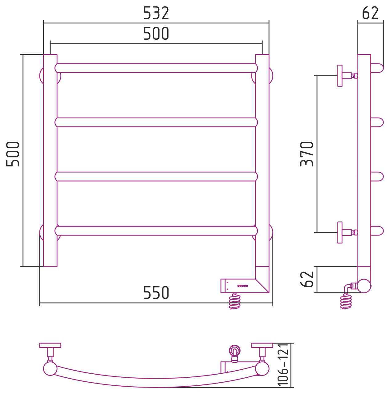 Полотенцесушитель электрический Сунержа Галант 2.0 500x500 МЭМ правый, белый (12-5201-5050)