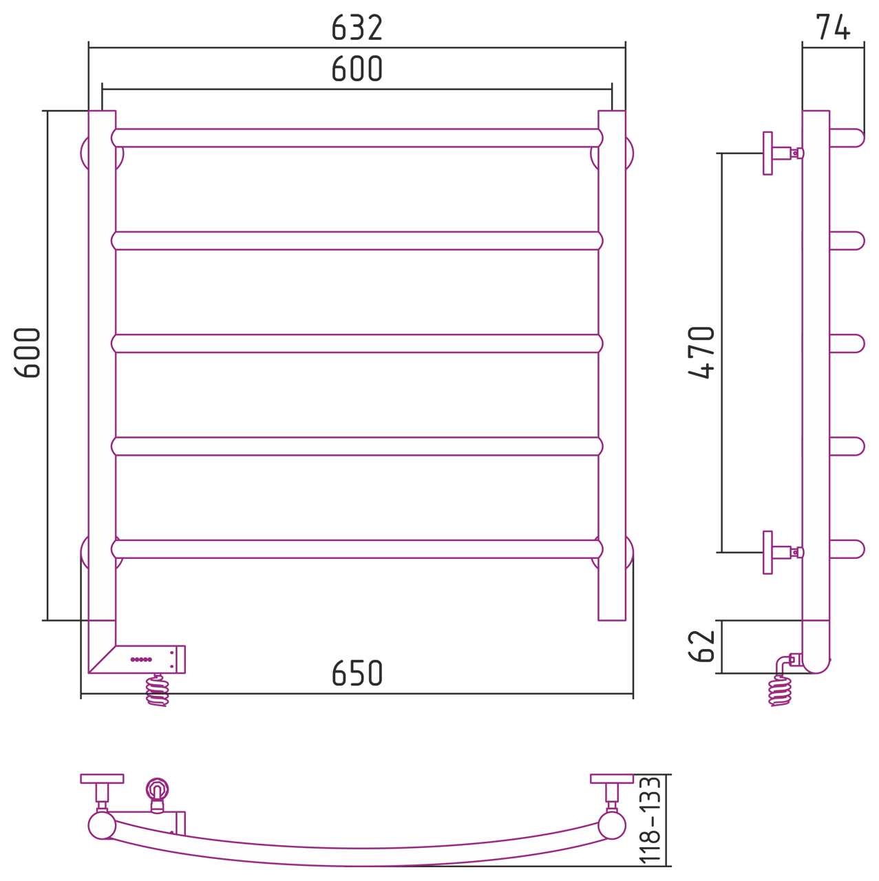 Комплектация: Полотенцесушитель, провод с вилкой, крепление