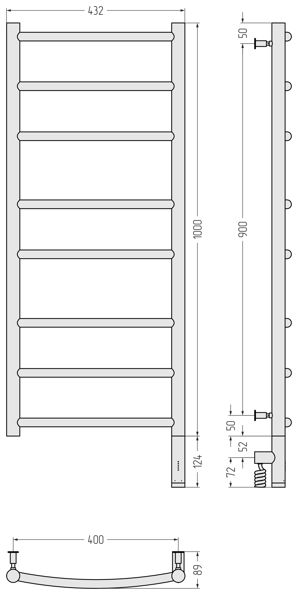 Полотенцесушитель электрический Сунержа Галант 3.0 1000x400 провод справа матовый белый (30-5801-1040)