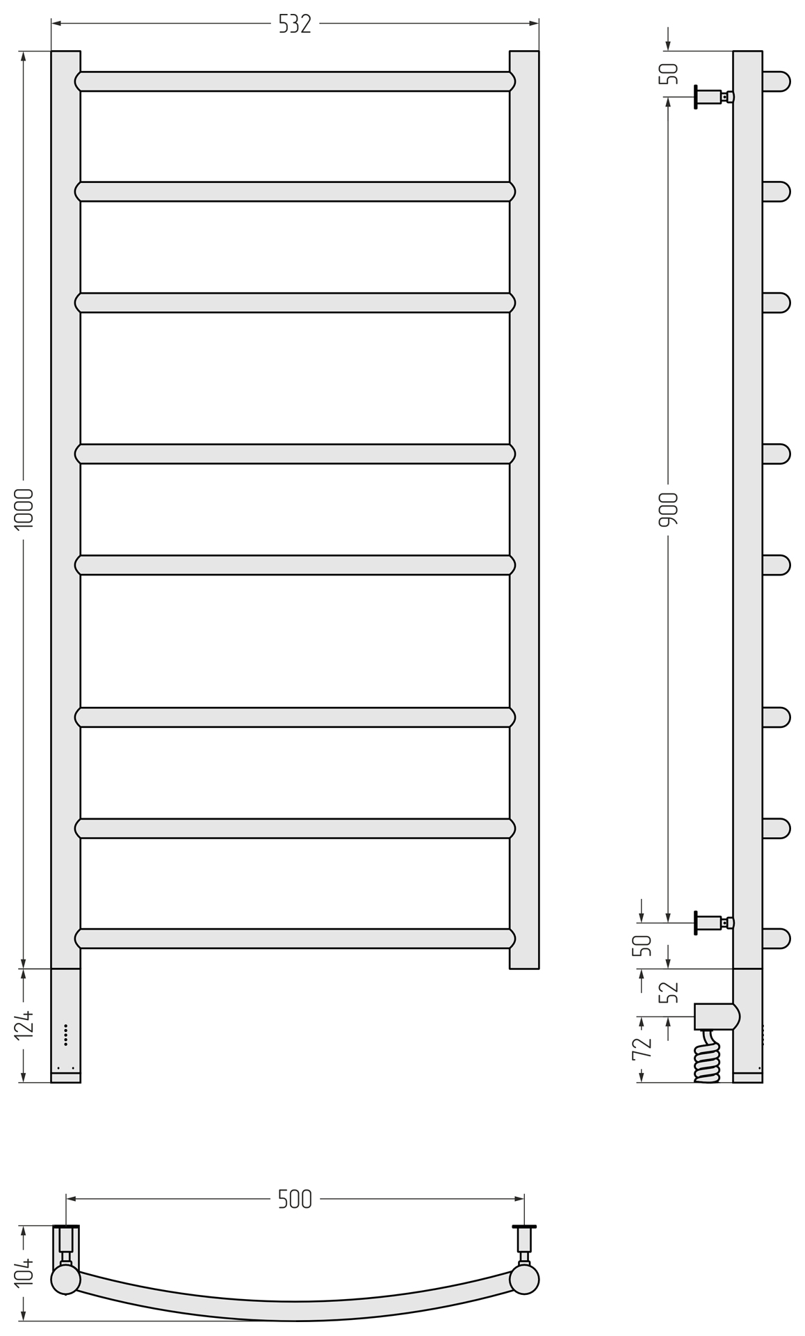 Полотенцесушитель электрический Сунержа Галант 3.0 1000x500 провод слева матовый чёрный (31-5800-1050)