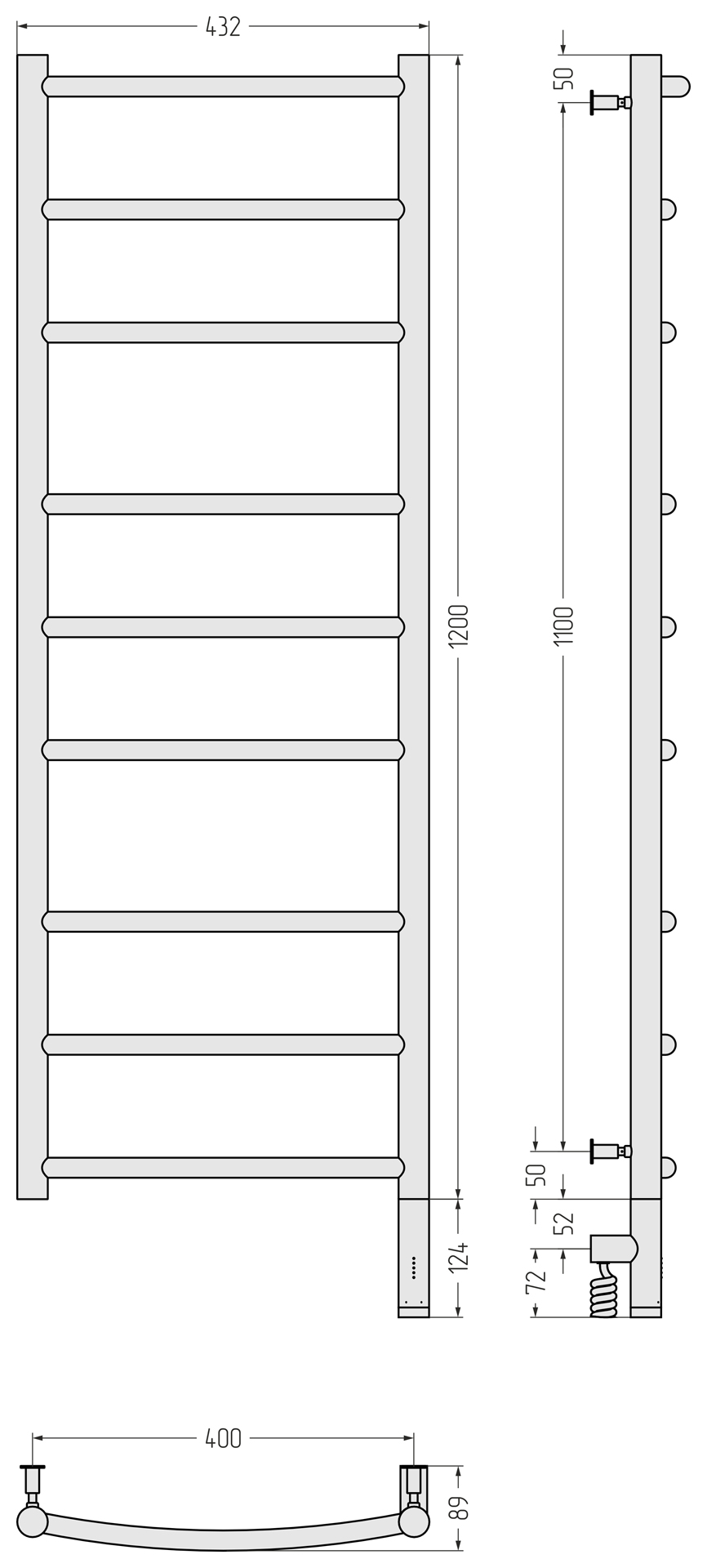 Полотенцесушитель электрический Сунержа Галант 3.0 1200x400 провод справа матовый чёрный (31-5801-1240)