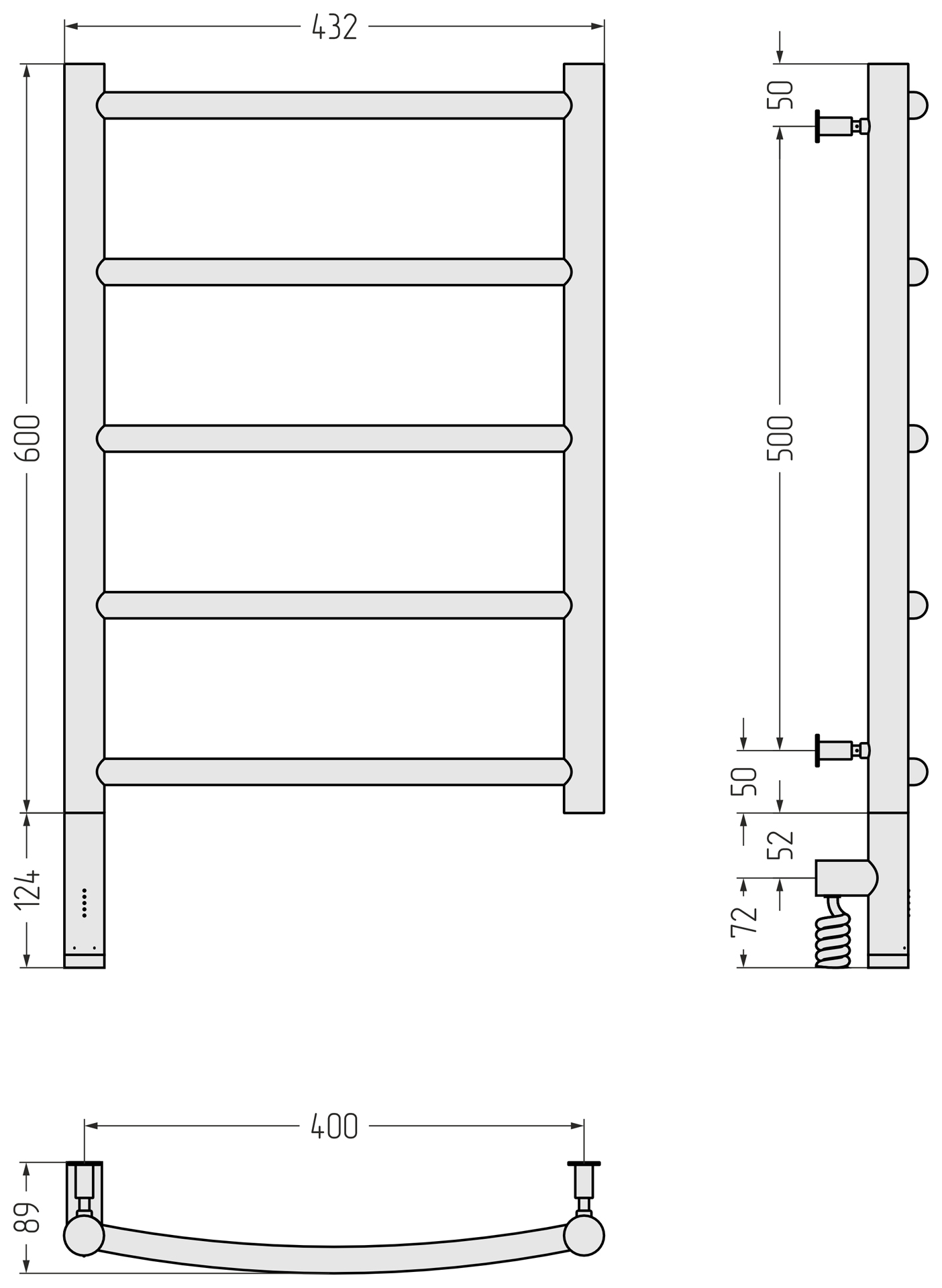 Полотенцесушитель электрический Сунержа Галант 3.0 600x400 провод слева матовый чёрный (31-5800-6040)