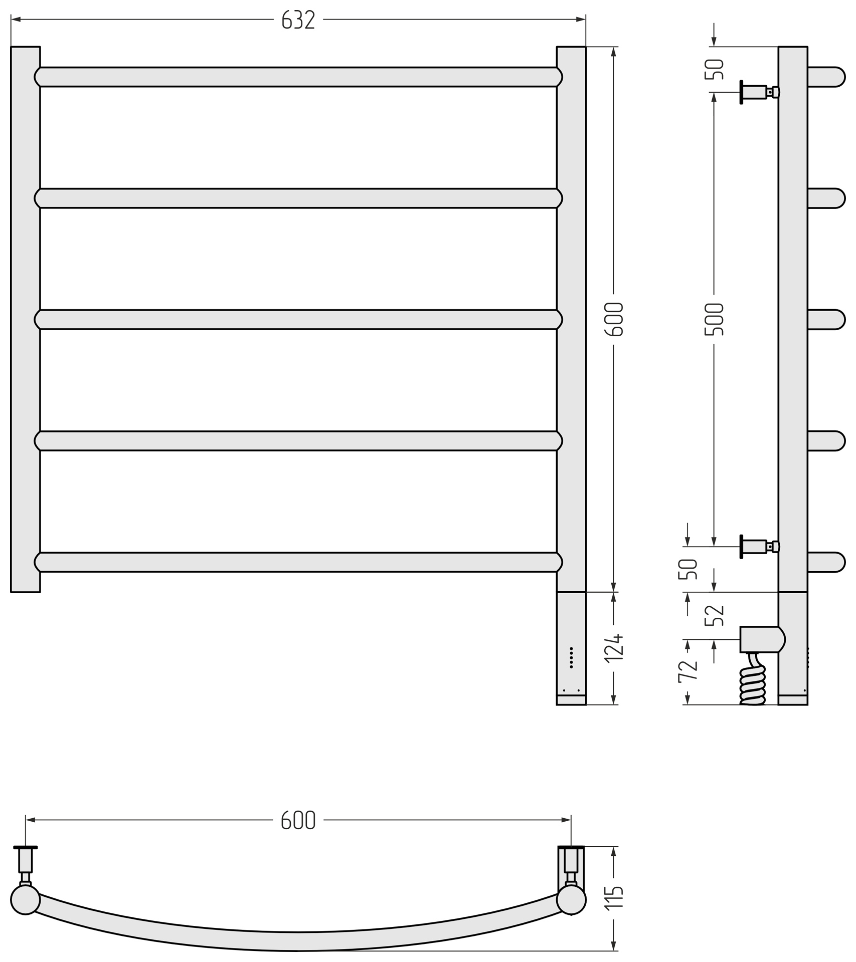 Полотенцесушитель электрический Сунержа Галант 3.0 600x600 провод справа матовый чёрный (31-5801-6060)