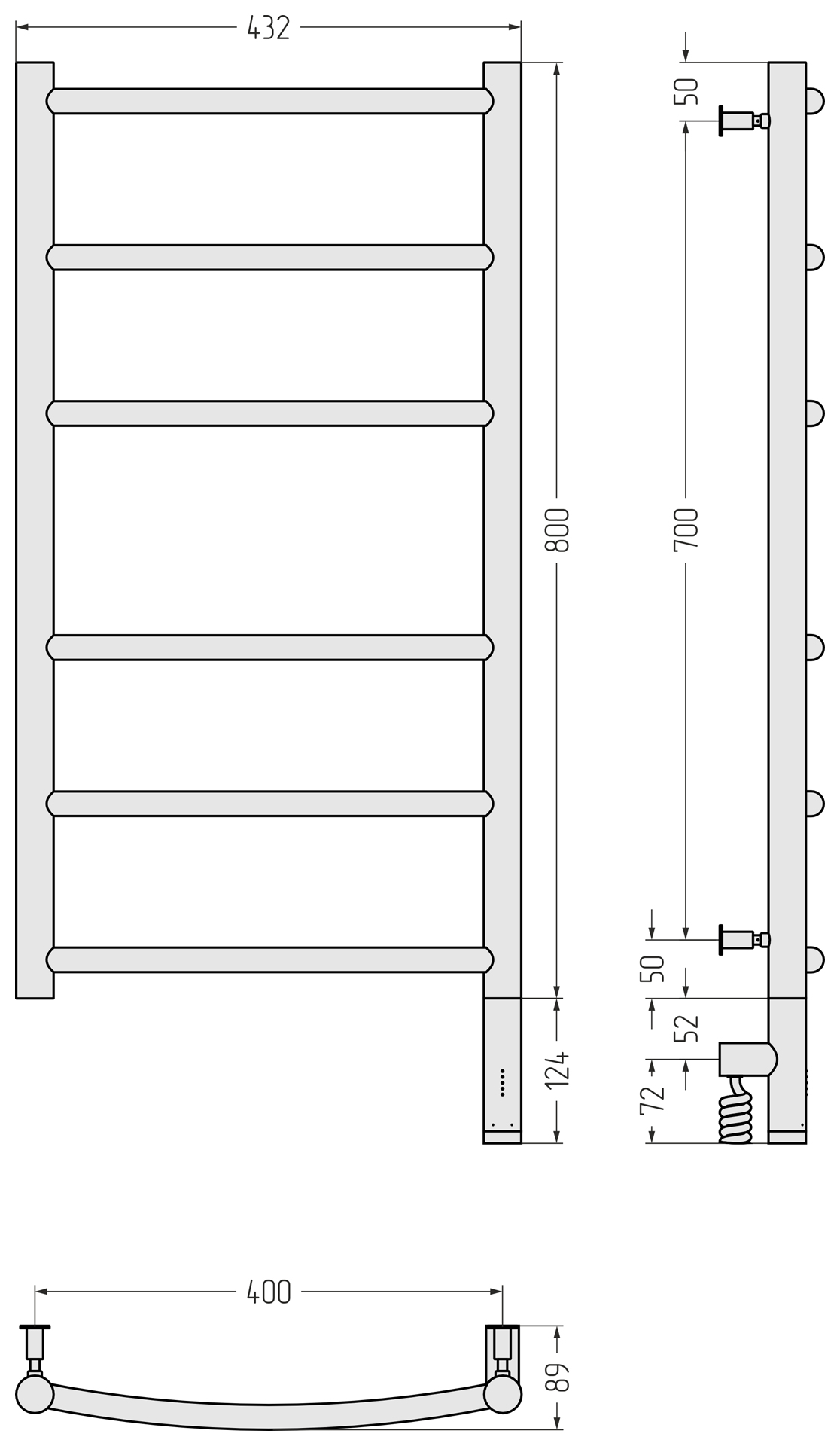 Полотенцесушитель электрический Сунержа Галант 3.0 800x400 провод справа матовый чёрный (31-5801-8040)