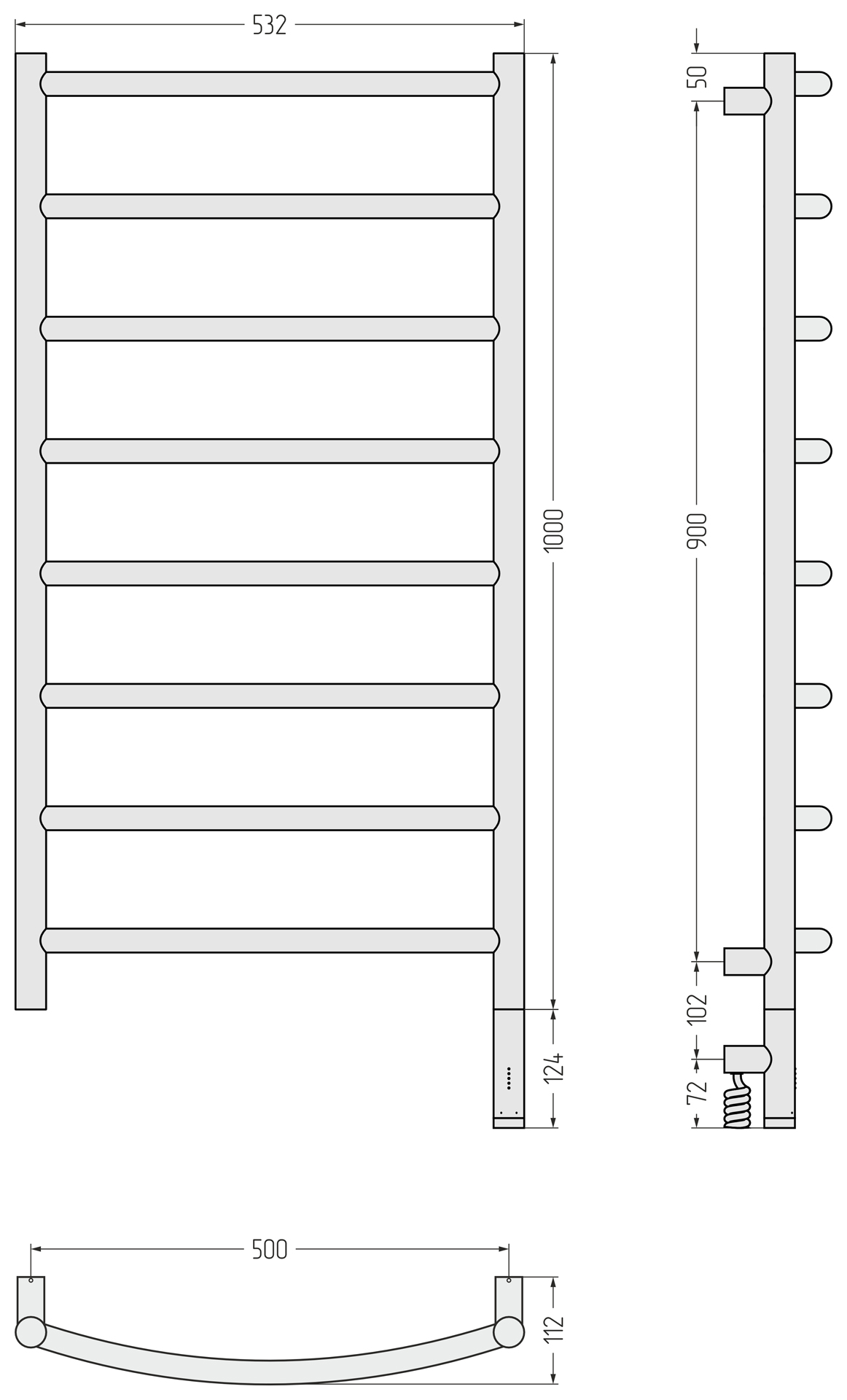 Полотенцесушитель электрический Сунержа Галант 3.1 1000x500 провод справа матовый чёрный (31-6001-1050)