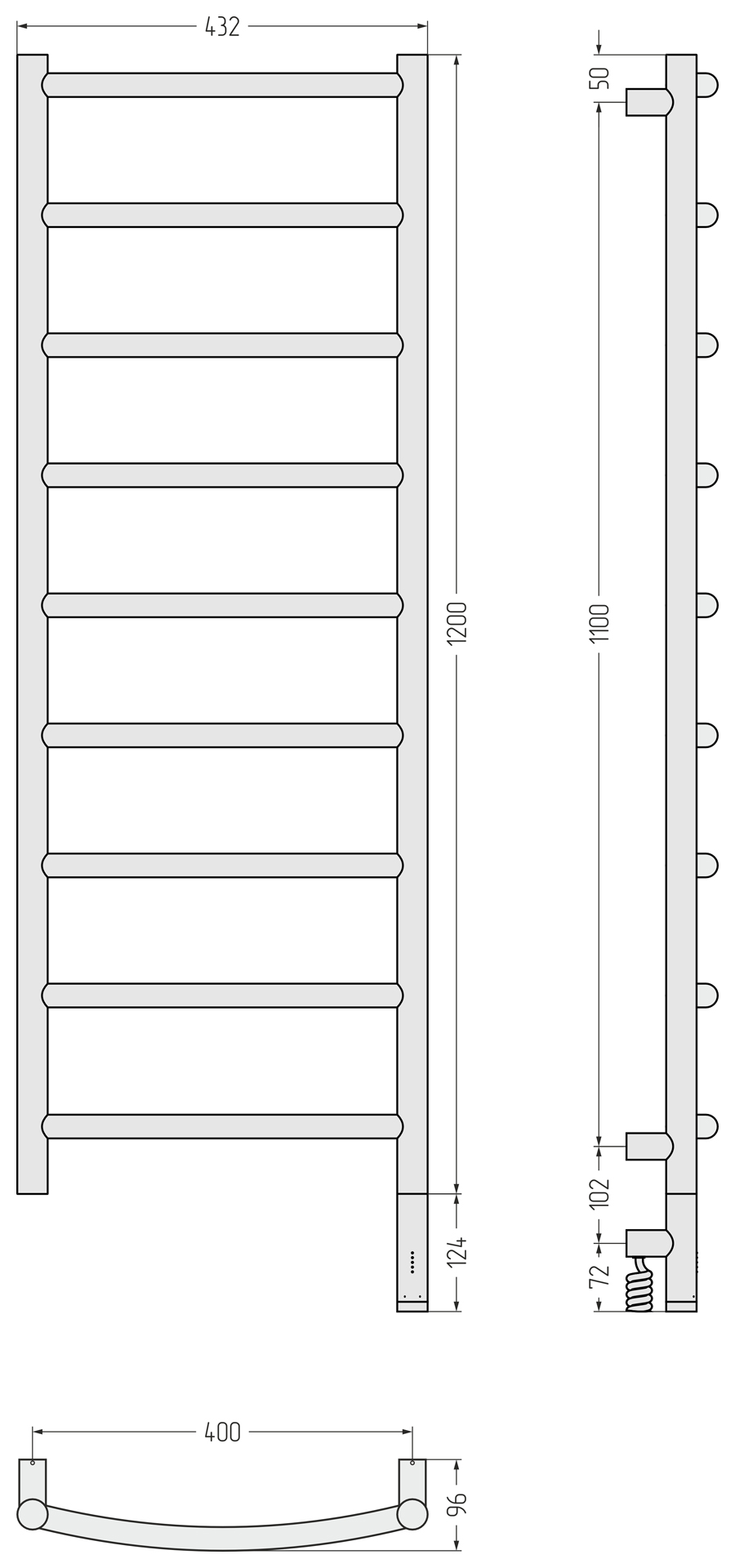Полотенцесушитель электрический Сунержа Галант 3.1 1200x400 провод справа матовый чёрный (31-6001-1240)