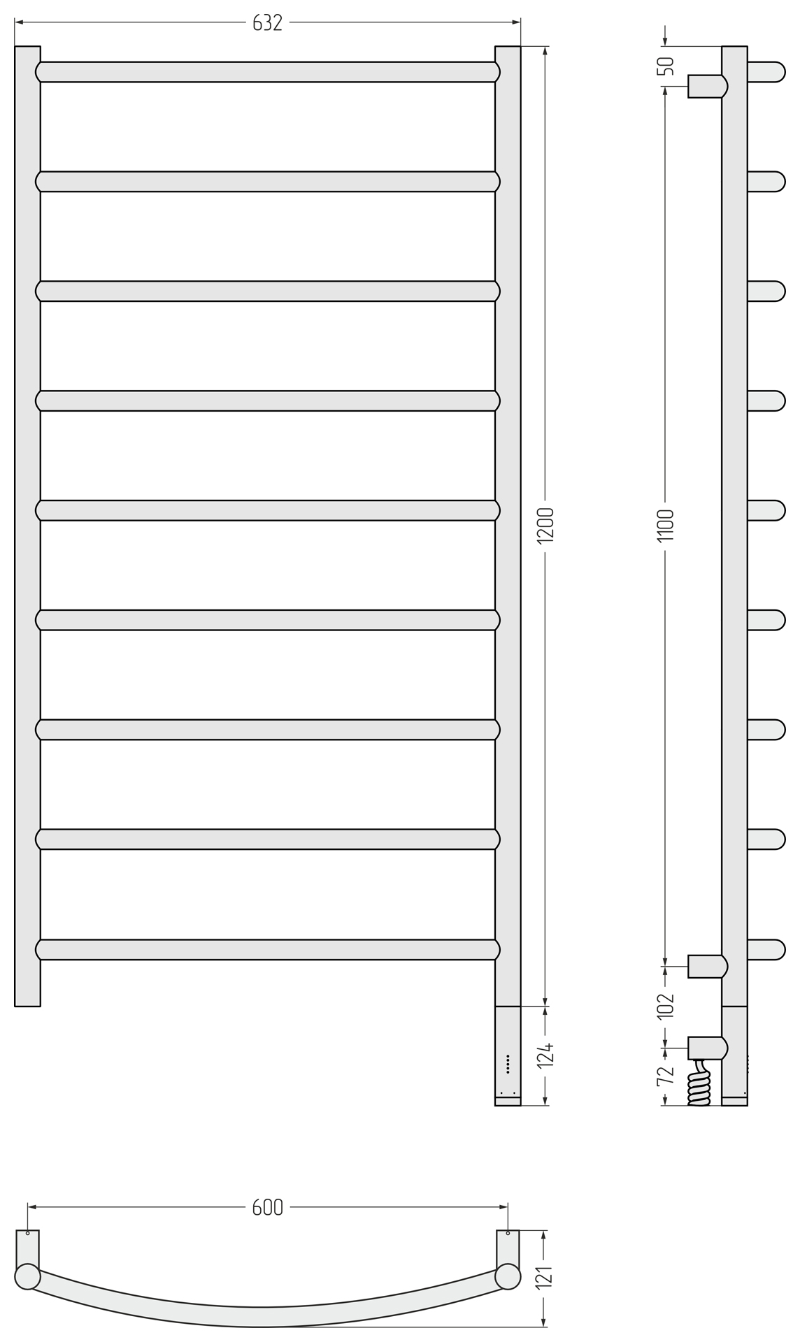 Полотенцесушитель электрический Сунержа Галант 3.1 1200x600 провод справа матовый чёрный (31-6001-1260)