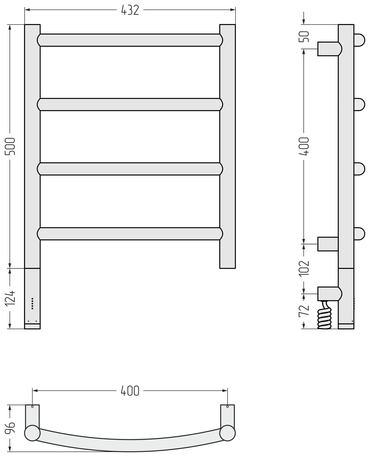 Полотенцесушитель электрический Сунержа Галант 3.1 500x400 провод слева матовый чёрный (31-6000-5040)