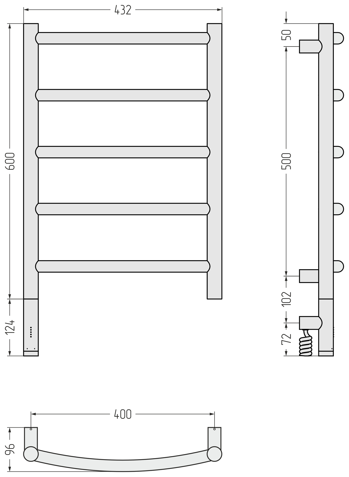Состав поставки: полотенцесушитель, спускной клапан, отражатели, эксцентрики и опоры кронштейнов, комплект прокладок, шестигранные ключи, дюбели и саморезы