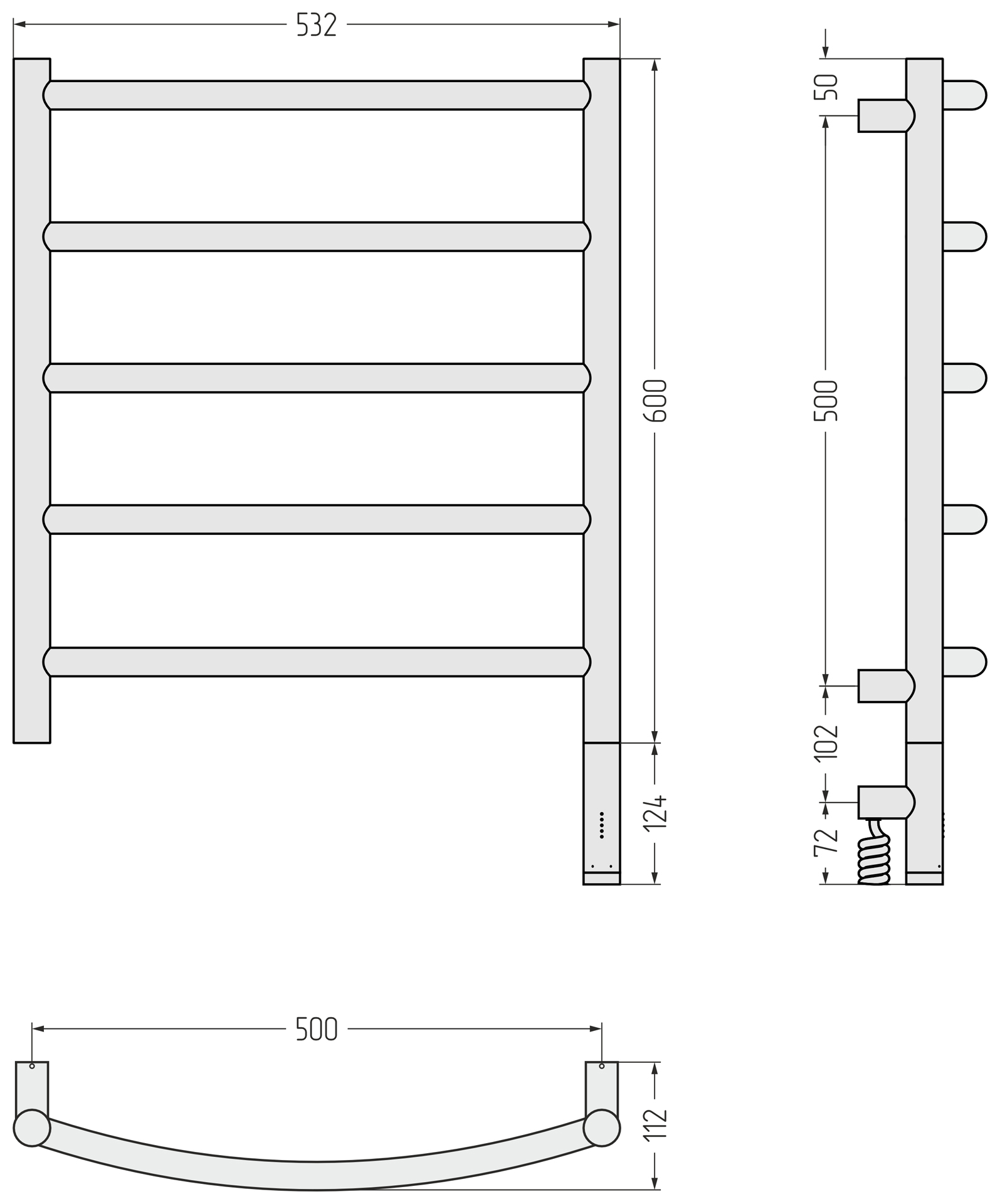 Полотенцесушитель электрический Сунержа Галант 3.1 600x500 МЭМ провод справа матовый белый (30-6001-6050)