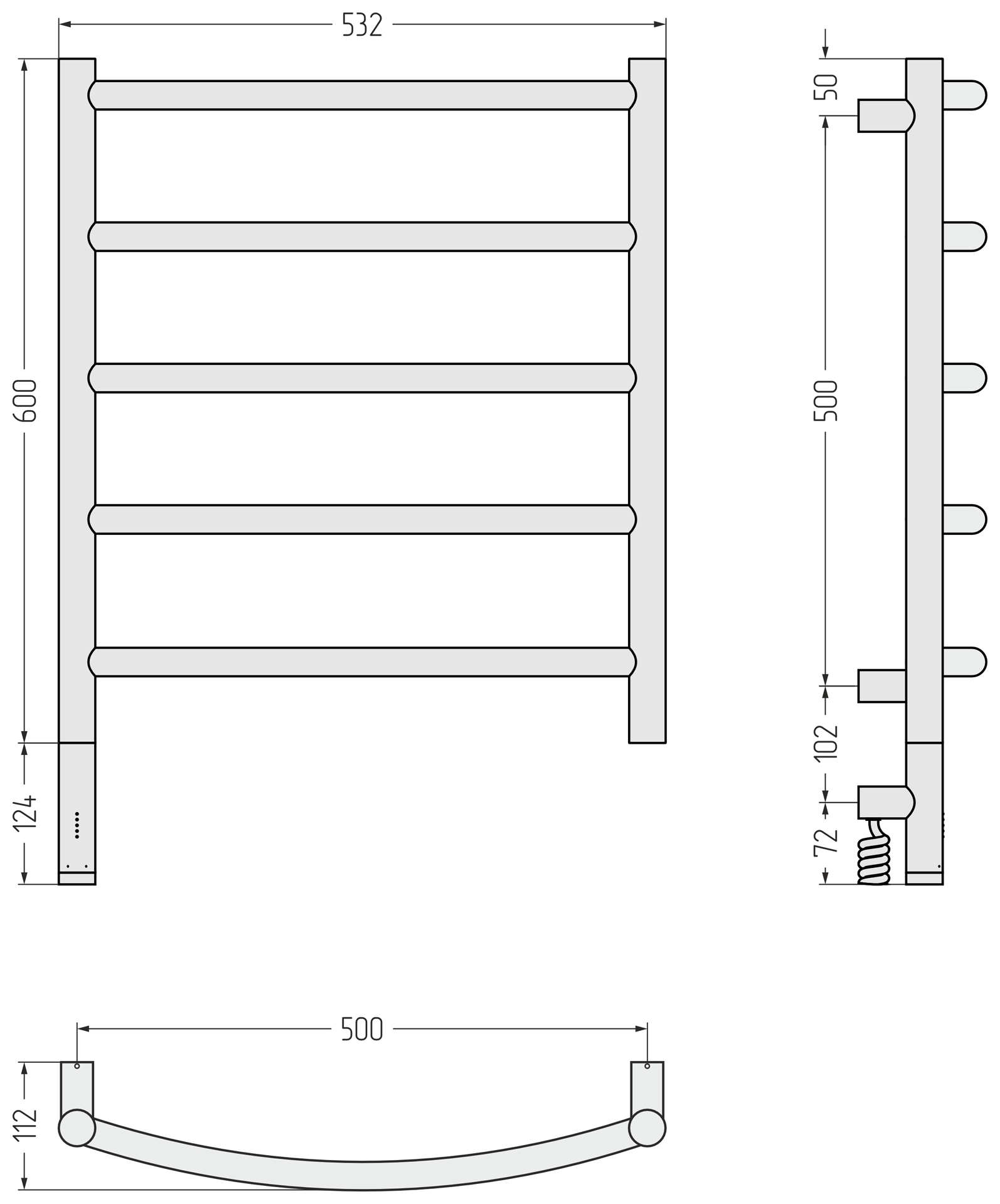 Полотенцесушитель электрический Сунержа Галант 3.1 600x500 провод слева матовый чёрный (31-6000-6050)