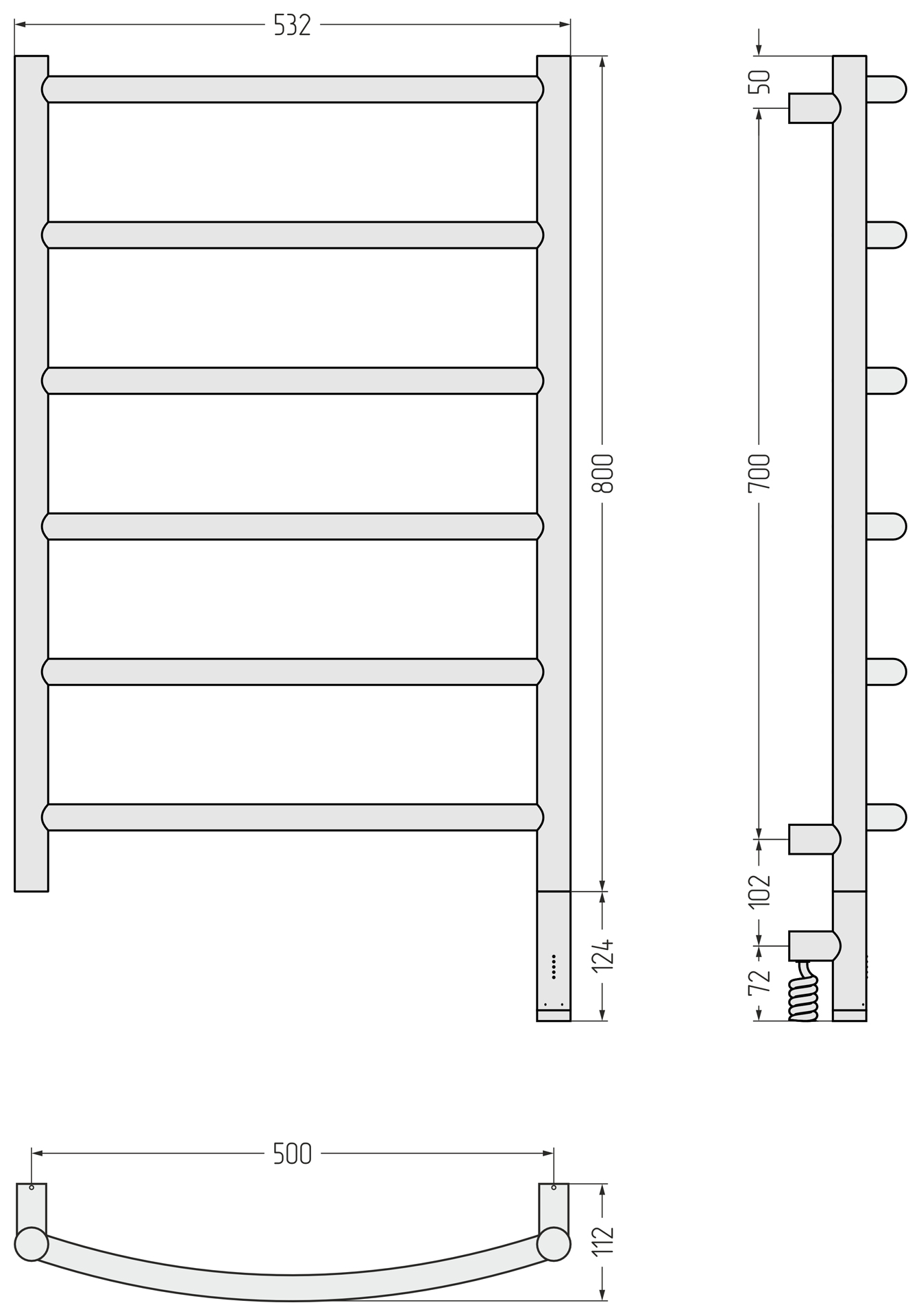 Полотенцесушитель электрический Сунержа Галант 3.1 800x500 провод справа матовый чёрный (31-6001-8050)