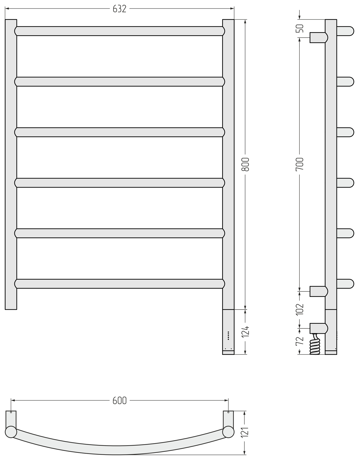 Состав поставки: полотенцесушитель, спускной клапан, отражатели, эксцентрики и опоры кронштейнов, комплект прокладок, шестигранные ключи, дюбели и саморезы