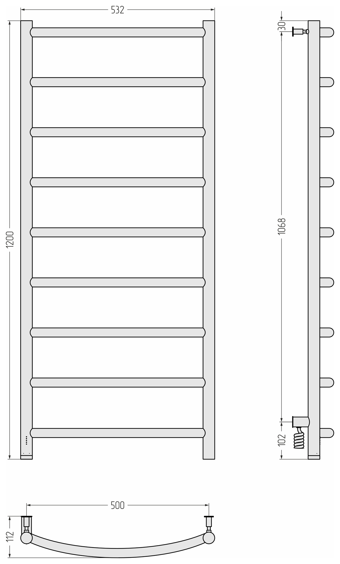 Полотенцесушитель электрический Сунержа Галант 4.0 1200x500 провод слева матовый чёрный (31-0830-1250)