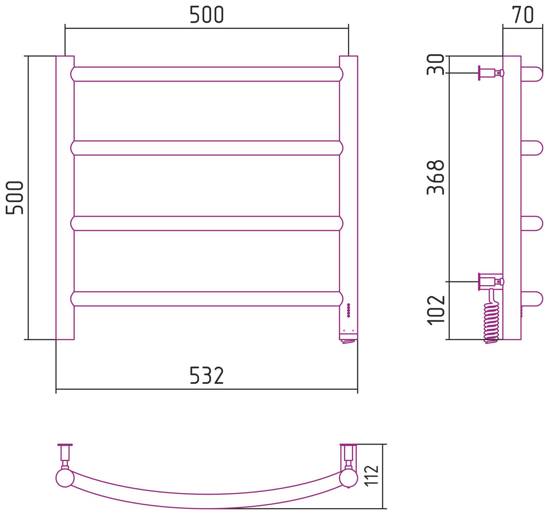 Полотенцесушитель электрический Сунержа Галант 4.0 500x500 МЭМ правый, белый (12-0831-5050)