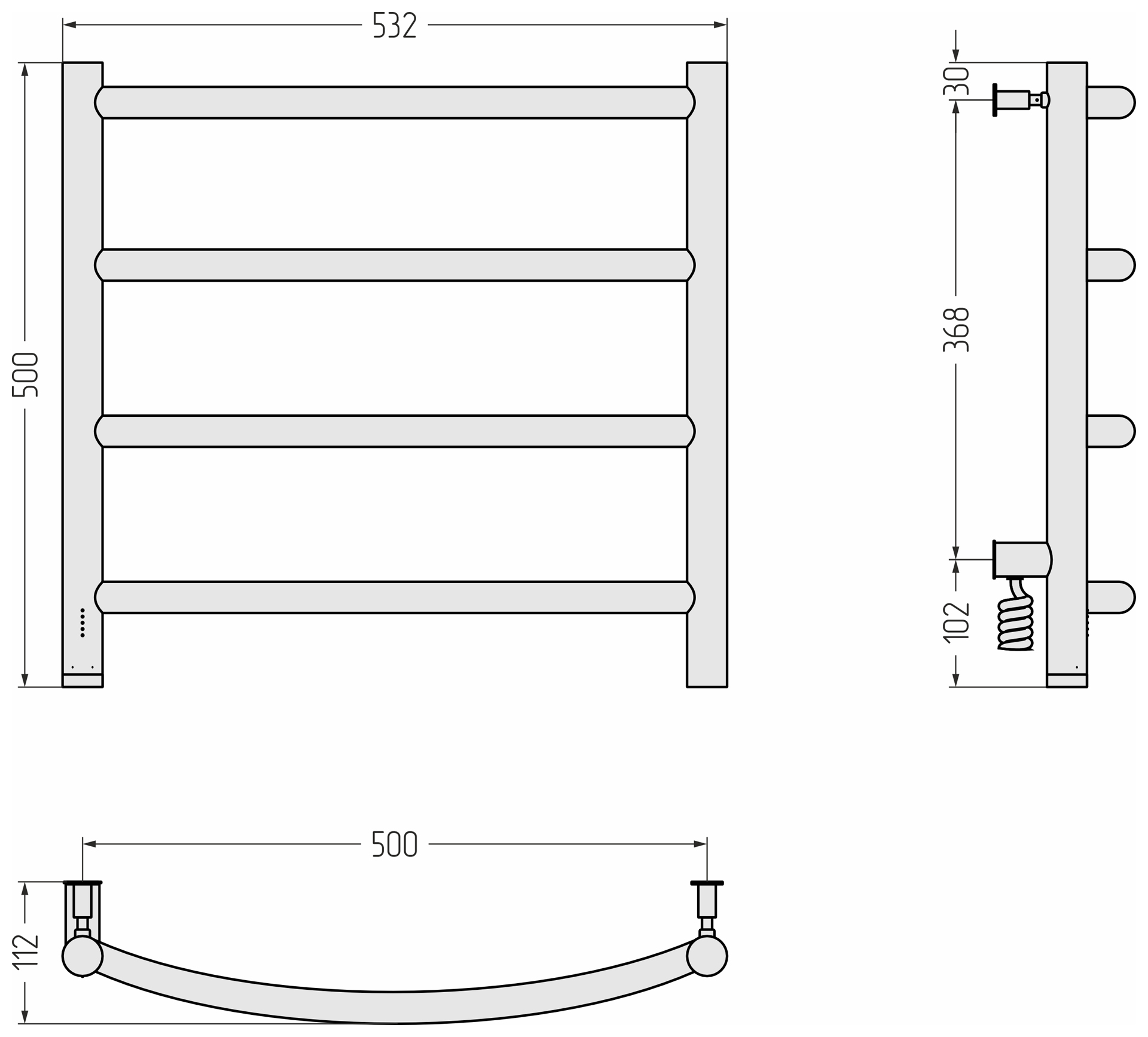 Полотенцесушитель электрический Сунержа Галант 4.0 500x500 провод слева матовый чёрный (31-0830-5050)
