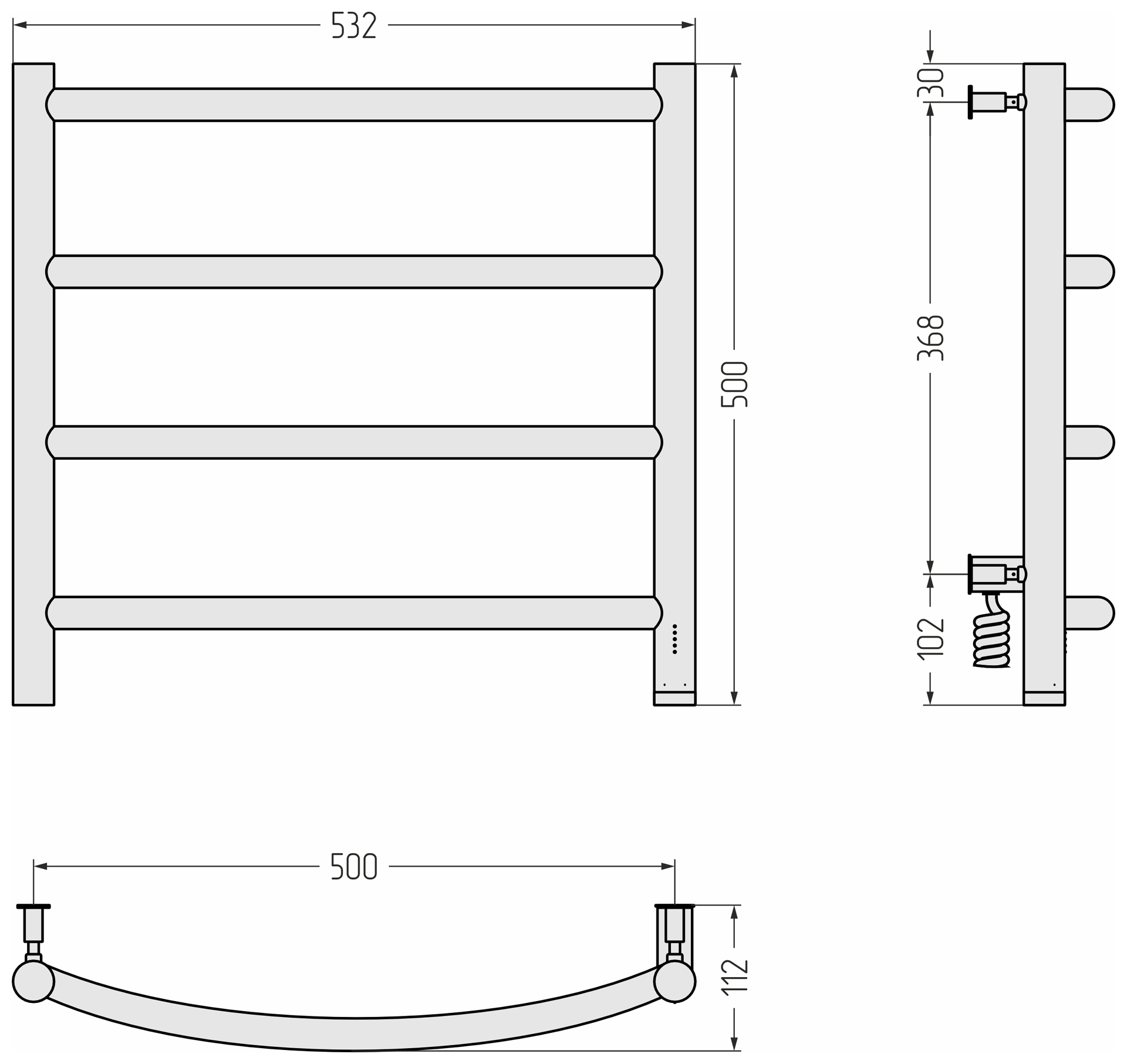 Полотенцесушитель электрический Сунержа Галант 4.0 500x500 провод справа матовый чёрный (31-0831-5050)
