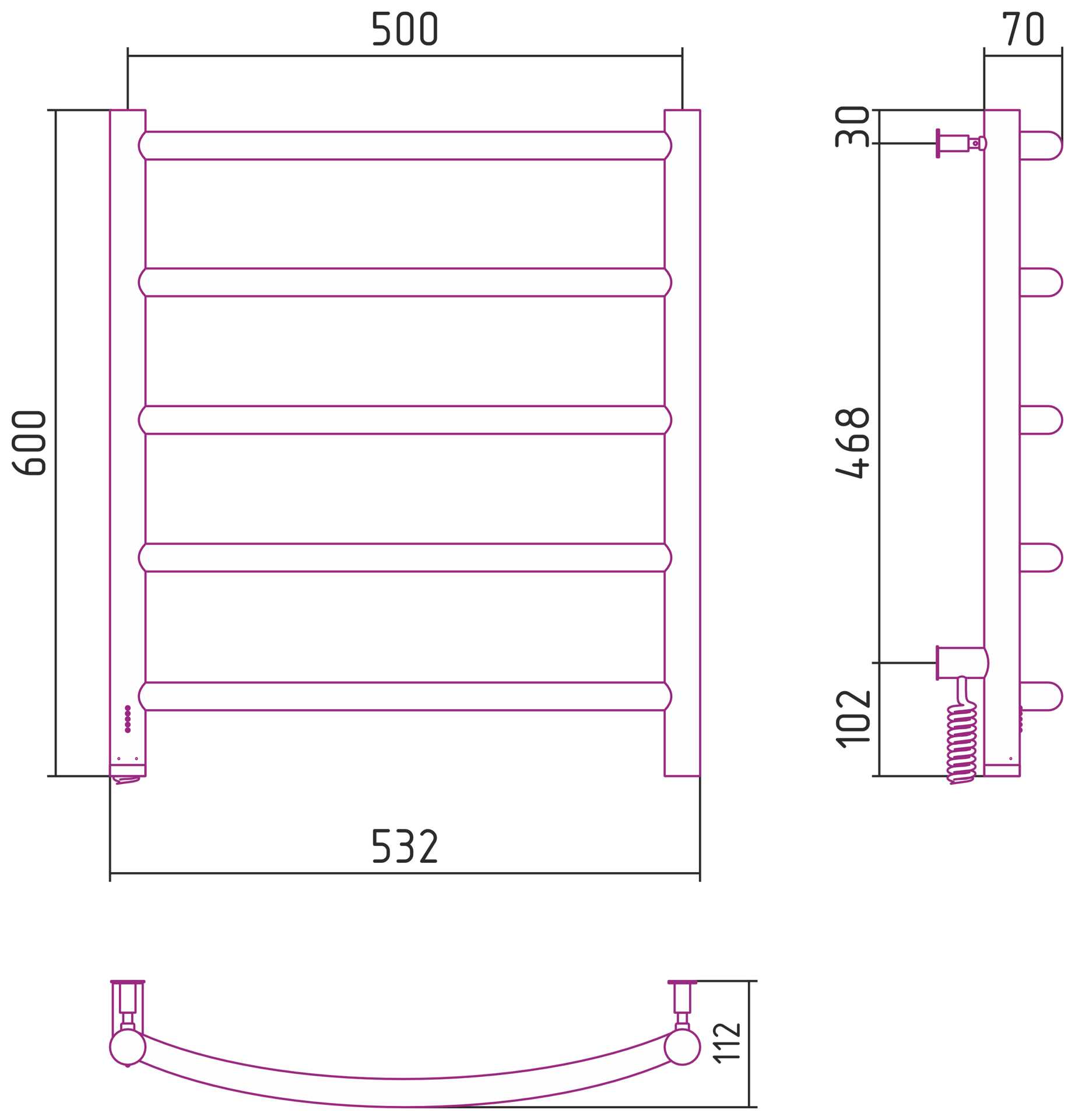 Комплектация: Полотенцесушитель, провод с вилкой, крепление