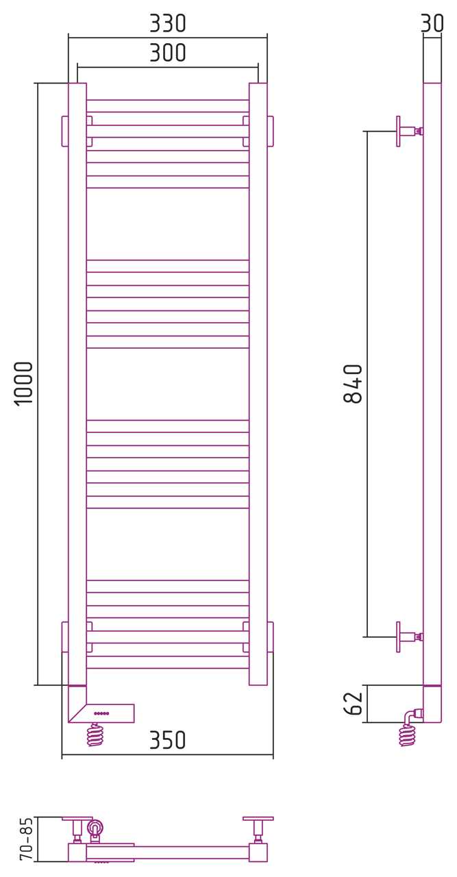 Полотенцесушитель электрический Сунержа Модус 2.0 1000x300 МЭМ левый, хром (00-5600-1030)
