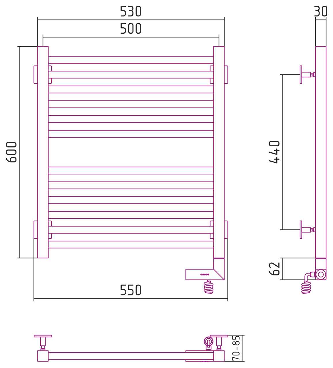 Полотенцесушитель электрический Сунержа Модус 2.0 600x500 МЭМ правый, хром (00-5601-6050)