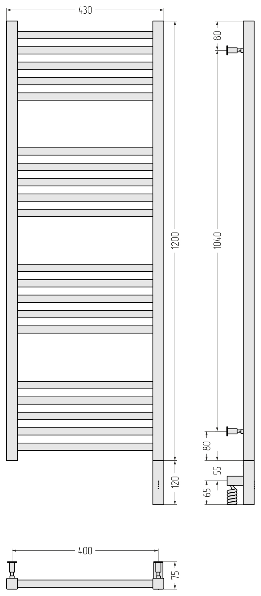 Полотенцесушитель электрический Сунержа Модус 3.0 1200x400 провод справа матовый белый (30-5701-1240)
