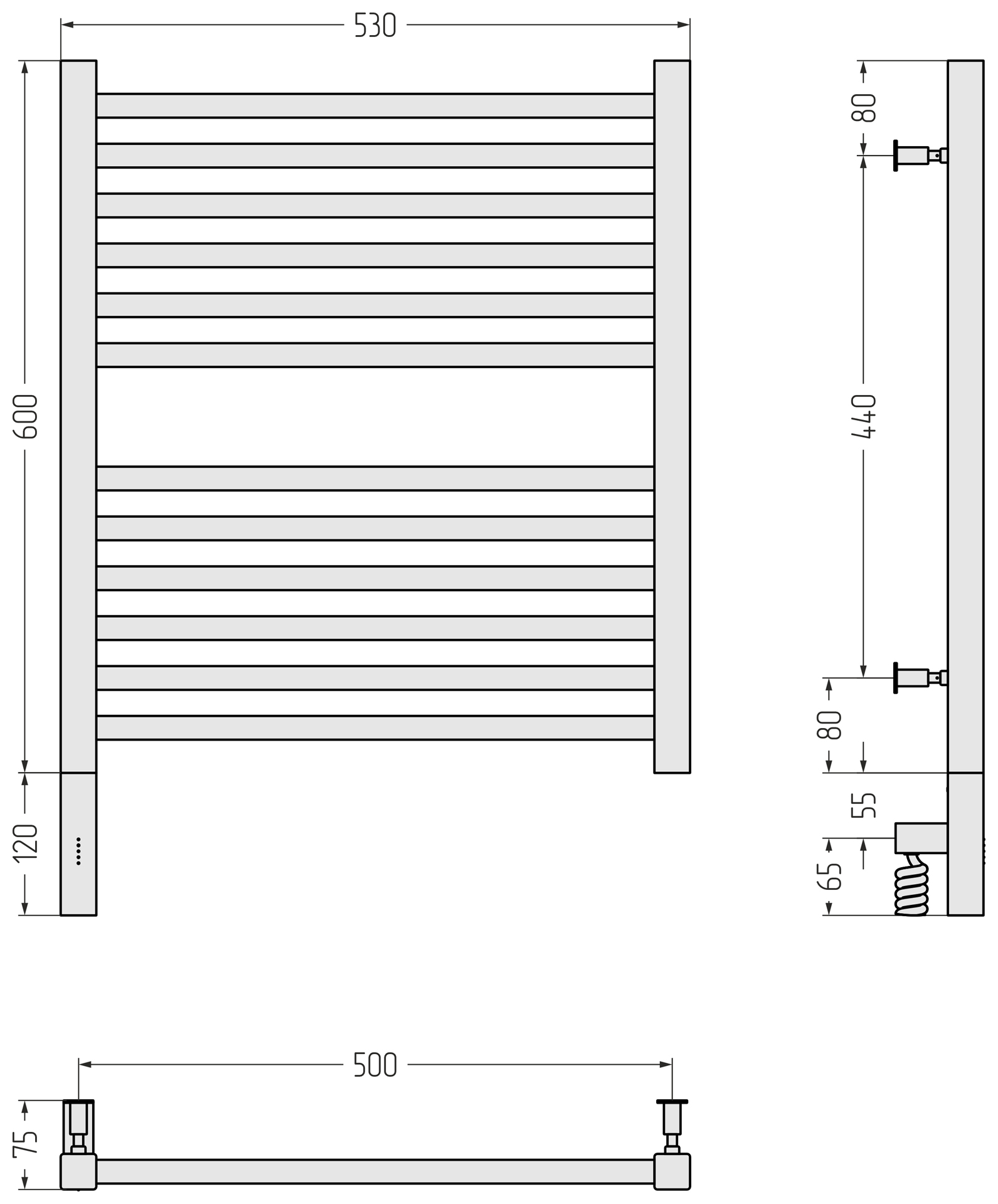 Полотенцесушитель электрический Сунержа Модус 3.0 600x500 провод слева матовый чёрный (31-5700-6050)