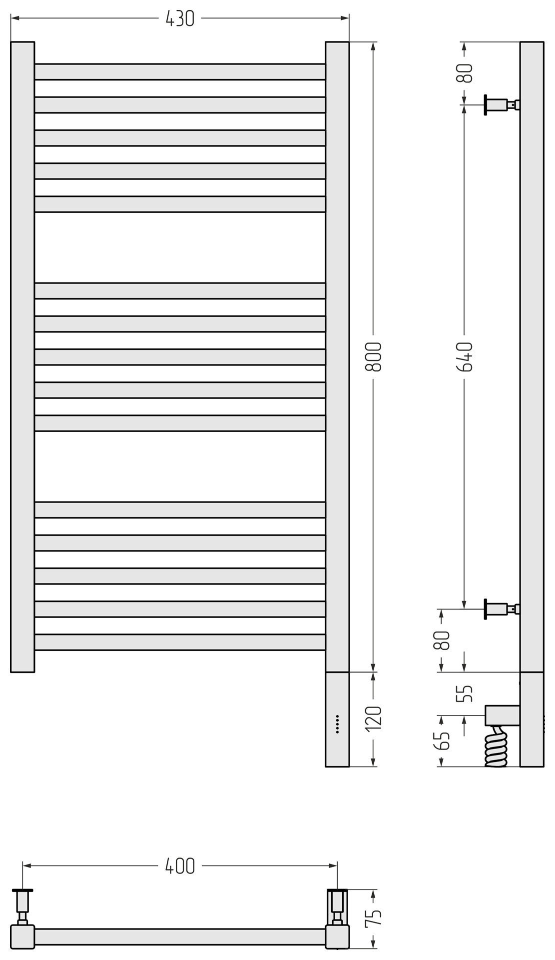Полотенцесушитель электрический Сунержа Модус 3.0 800x400 провод справа матовый чёрный (31-5701-8040)