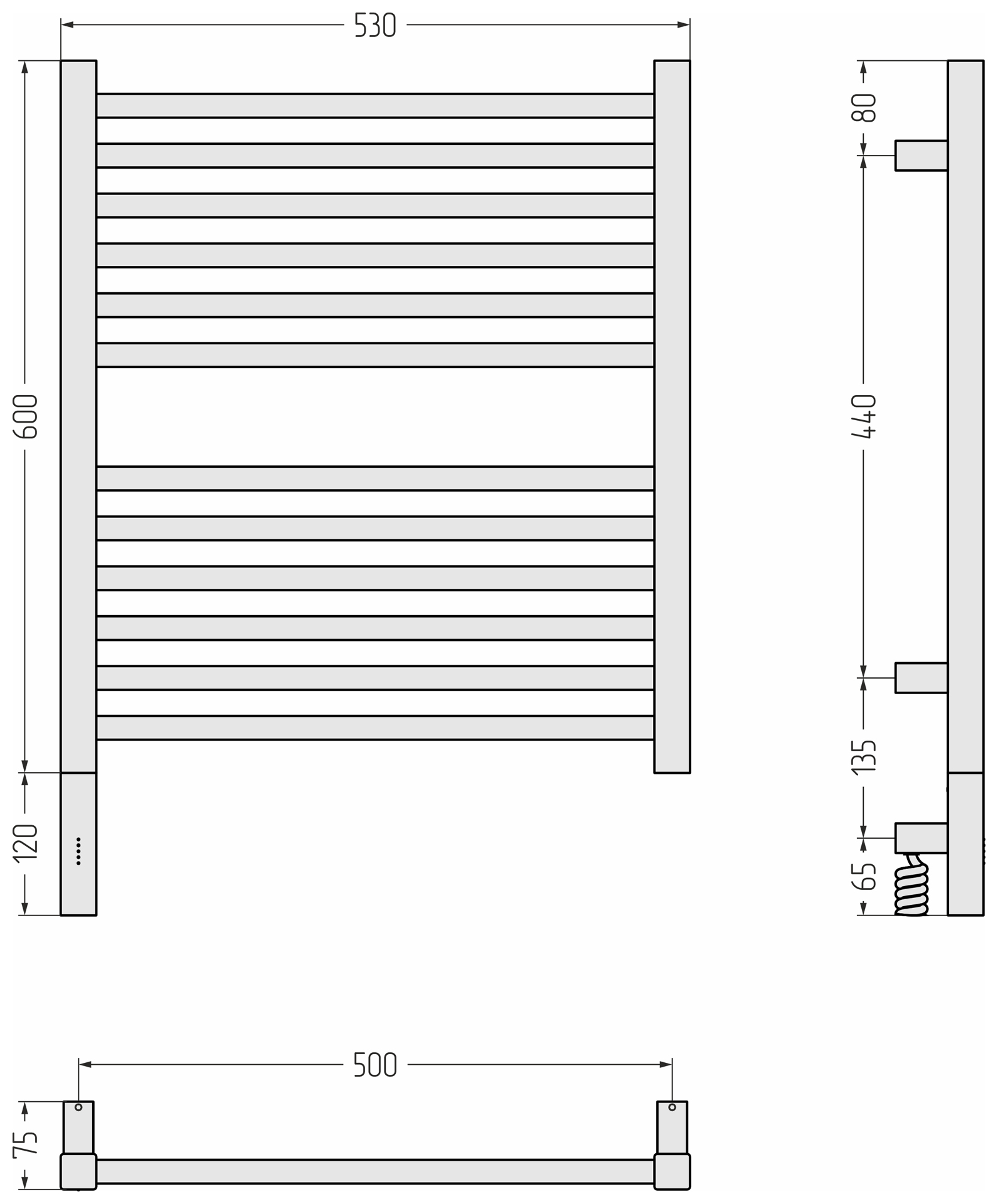Полотенцесушитель электрический Сунержа Модус 3.1 600x500 провод слева матовый чёрный (31-5900-6050)