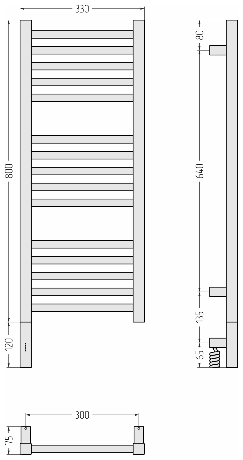 Полотенцесушитель электрический Сунержа Модус 3.1 800x300 провод слева матовый чёрный (31-5900-8030)
