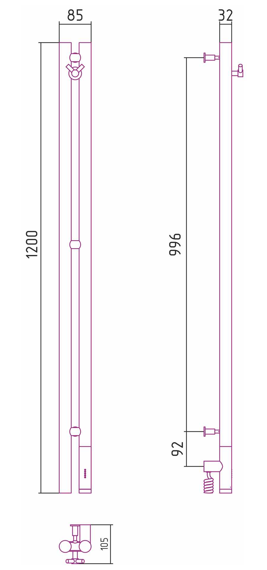 Полотенцесушитель электрический Сунержа Нюанс 3.0 1200 правый, хром (00-5843-1253)