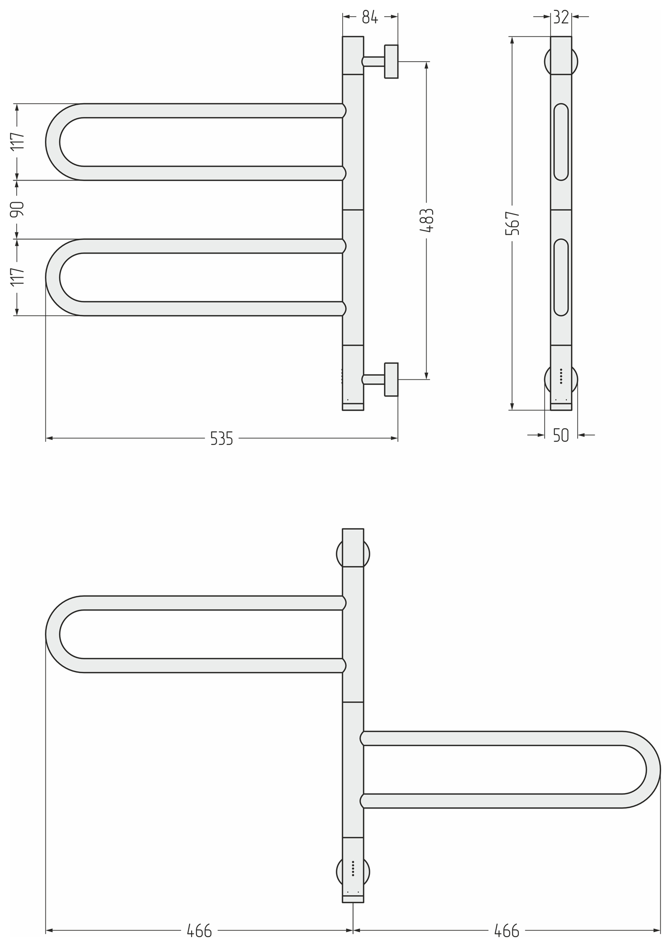 Полотенцесушитель электрический Сунержа Парео 4.0 567x535 провод снизу матовый белый (30-0823-0567)