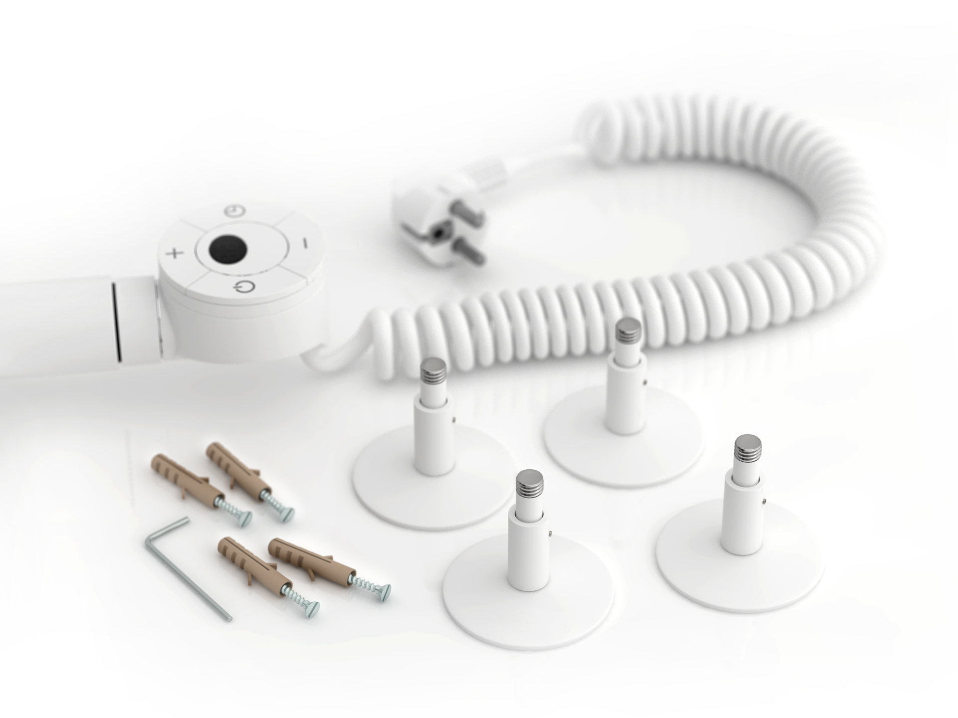 Состав поставки: полотенцесушитель, спускной клапан, отражатели, эксцентрики и опоры кронштейнов, комплект прокладок, шестигранные ключи, дюбели и саморезы