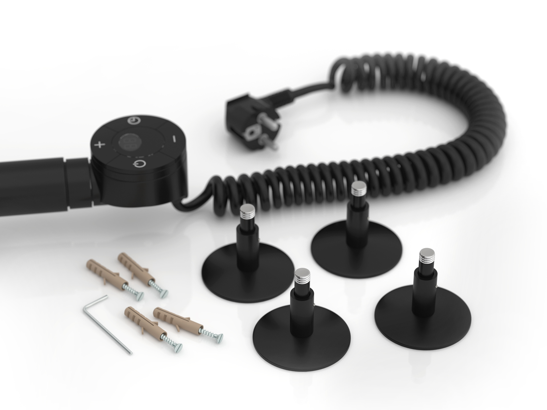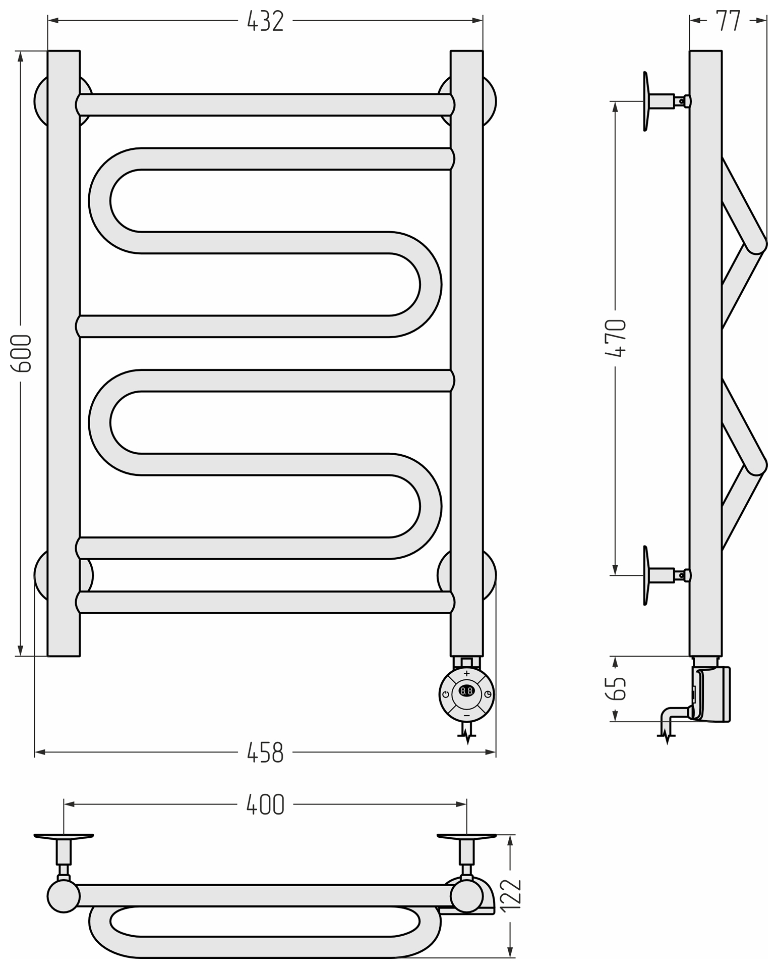 Состав поставки: полотенцесушитель, спускной клапан, отражатели, эксцентрики и опоры кронштейнов, комплект прокладок, шестигранные ключи, дюбели и саморезы