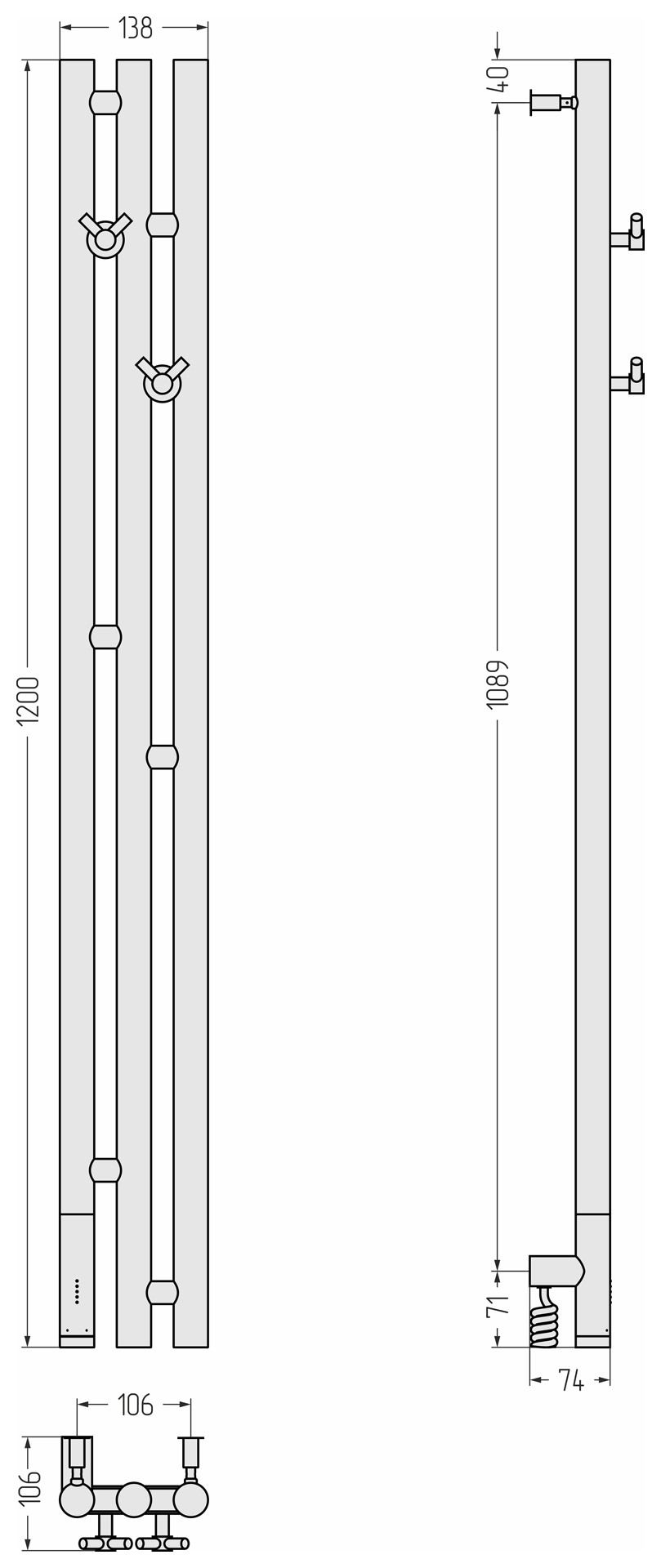 Полотенцесушитель электрический Сунержа Терция 3.0 1200x106 провод слева матовый чёрный (31-5844-1211)