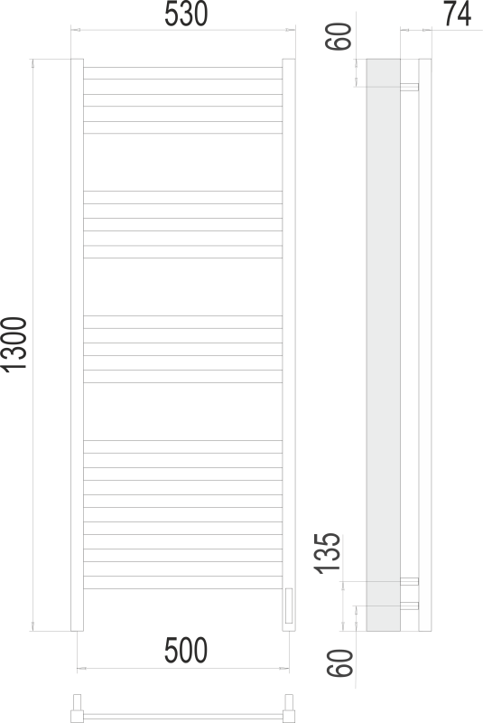 Полотенцесушитель электрический Terminus Енисей Lux П15 500х1300 6-3-3-3