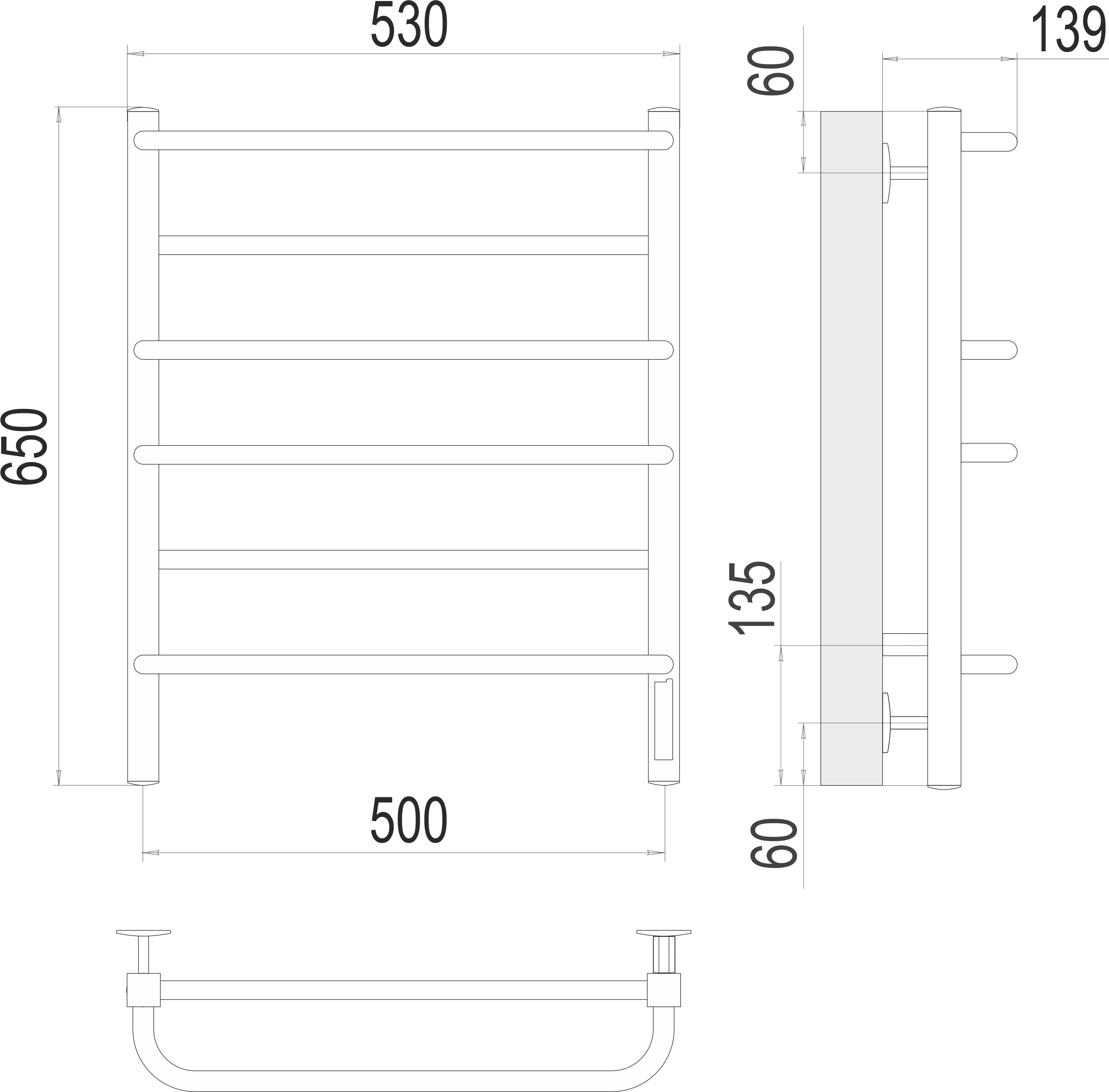 Полотенцесушитель электрический Terminus Евромикс квадро standart П6 500х650