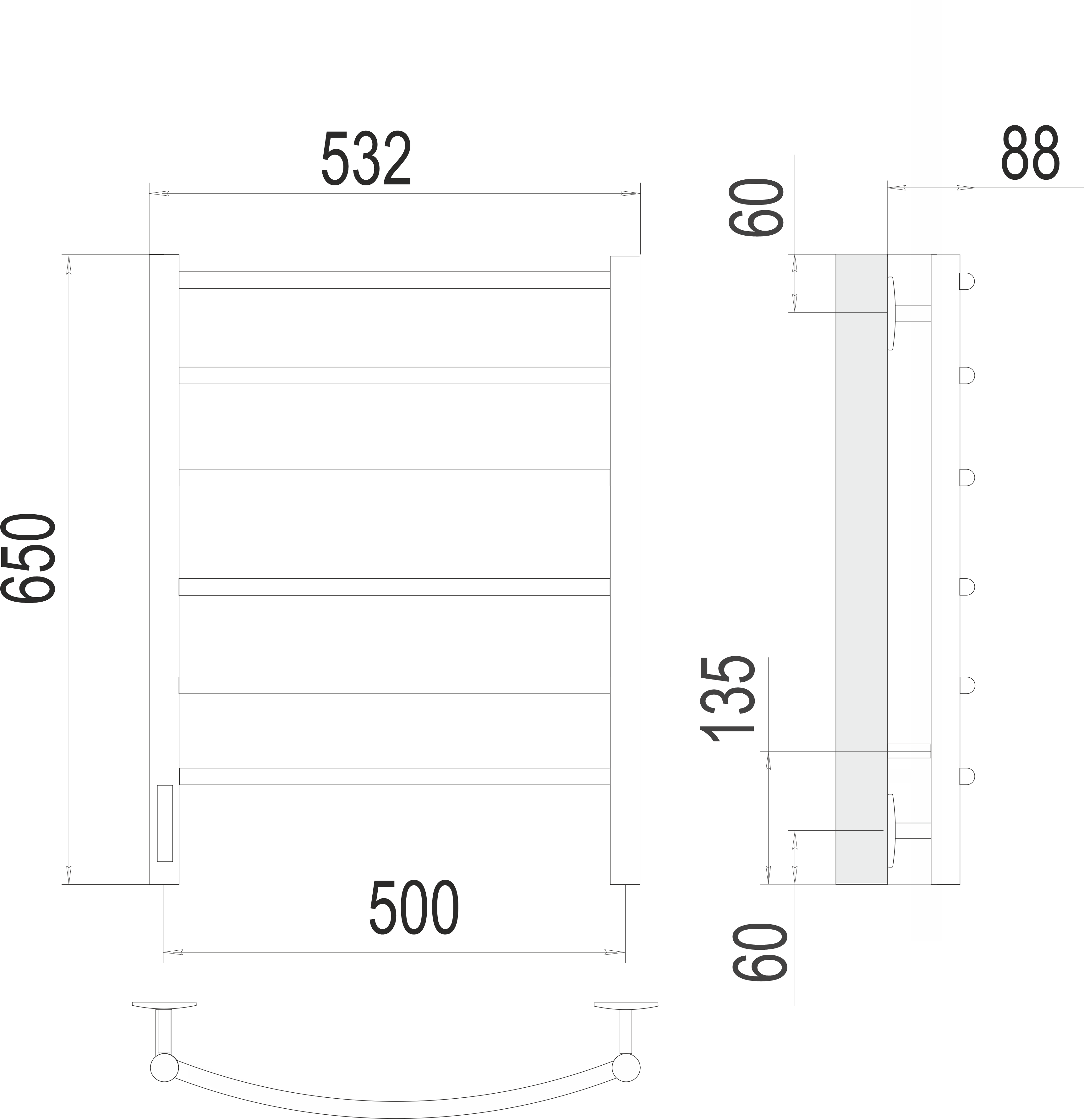 Полотенцесушитель электрический Terminus Классик standart П6 500х650 подключение слева