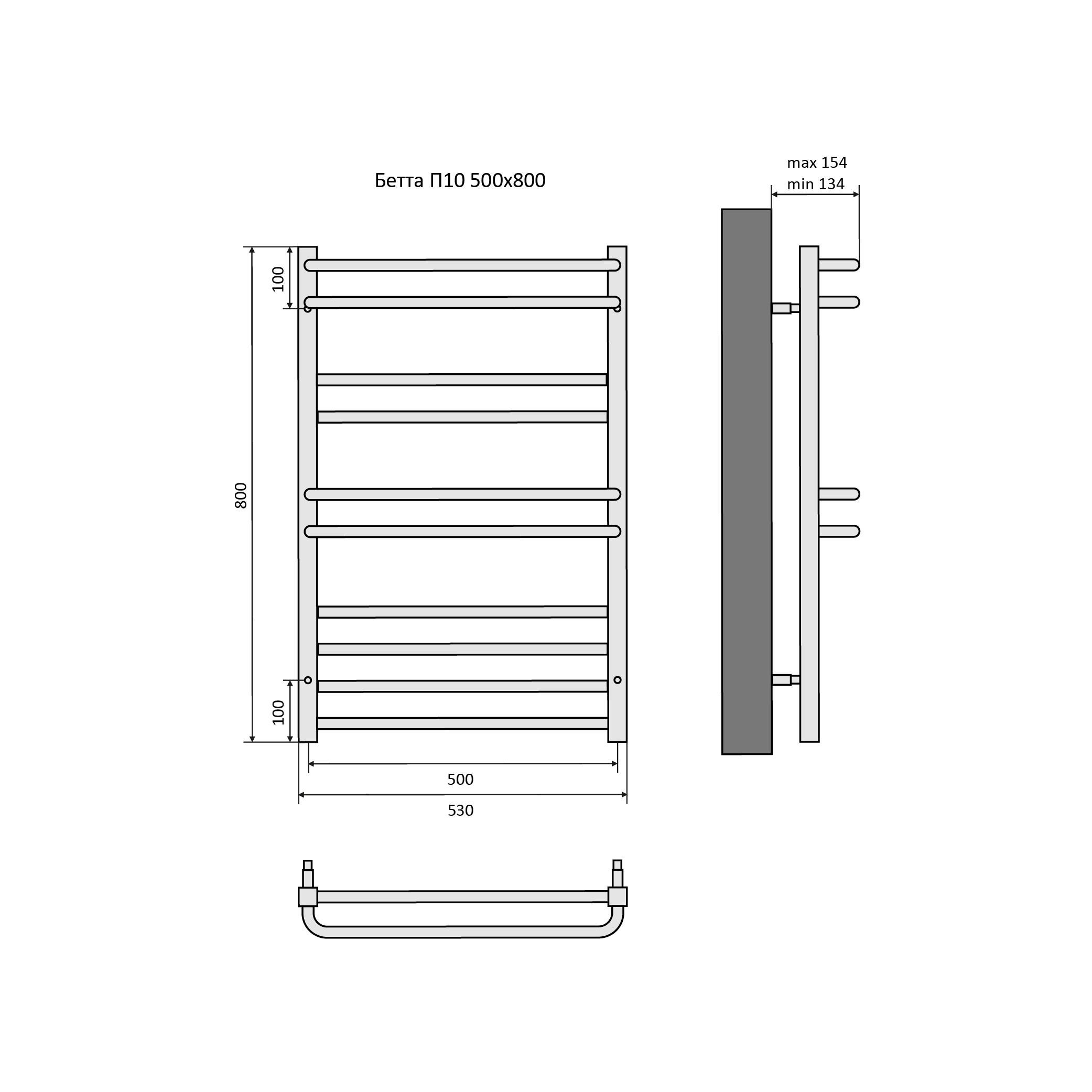 Полотенцесушитель водяной Aquatek (Акватек) Бетта П10 500х800 мм, подключение нижнее/диагональное, сверхпрочная пищевая нержавеющая сталь AISI 304L, гарантия 10 лет