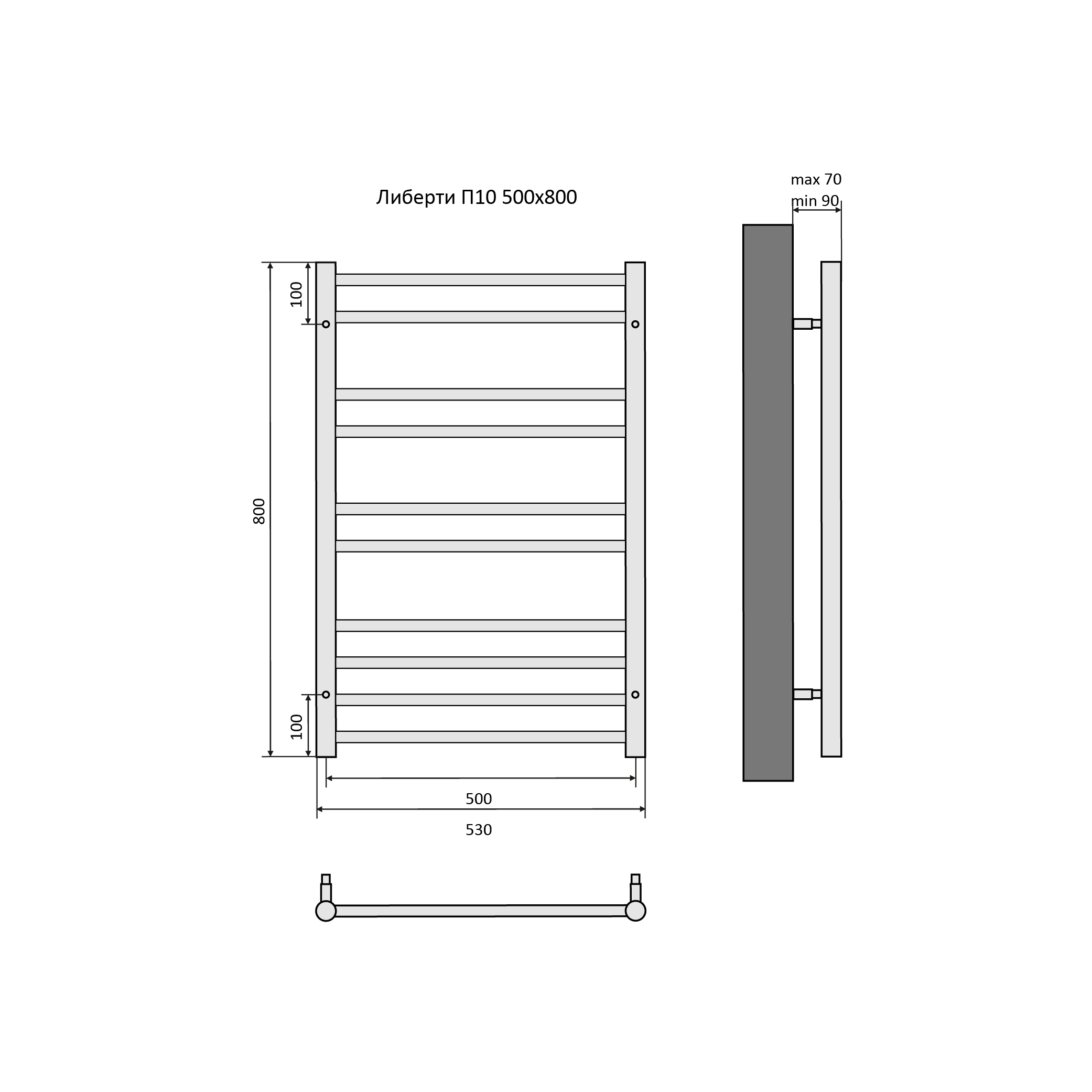 Полотенцесушитель водяной Aquatek (Акватек) Либерти П10 500х800 мм, черный муар, подключение нижнее/диагональное, сверхпрочная пищевая нержавеющая сталь AISI 304L, гарантия 10 лет