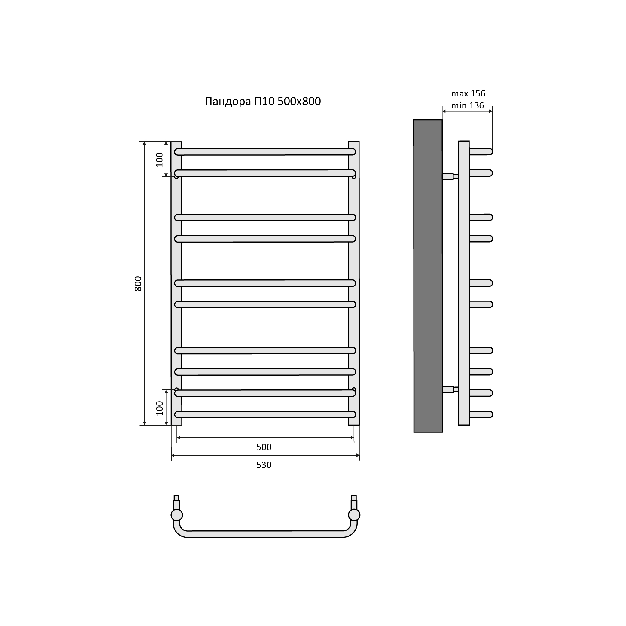 Полотенцесушитель водяной Aquatek (Акватек) Пандора П10 500х800 мм, подключение нижнее/диагональное, сверхпрочная пищевая нержавеющая сталь AISI 304L, гарантия 10 лет