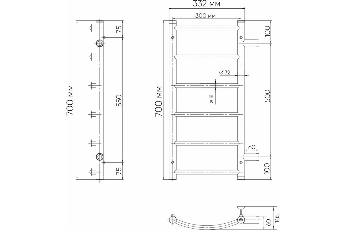 Полотенцесушитель водяной INDIGO Arc с боковым подключением в размере 700х300 (ВхШ) выбирают за его классический вид – лесенки и функциональность. Модель изготовлена из высококачественной нержавеющей стали. Качественная металлообработка в местах подключений обеспечивает плотное прилегание прокладки. Изделие окрашено порошковой краской по специальной технологии. В комплектацию входит изделие, гарантийный талон, держатели 4 шт., заглушка, кран Маевского. Для монтажа необходимо отдельно приобрести нужные вам фитинги.