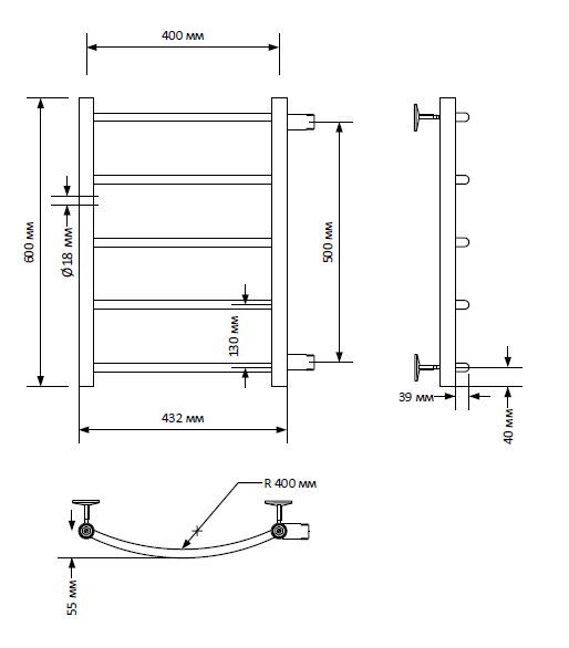 Полотенцесушитель водяной INDIGO Arc с боковым подключением в размере 600х400 (ВхШ).