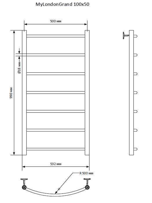 Полотенцесушитель водяной Indigo Arc 532x1000 1/2" без полочки (LAW100-50)