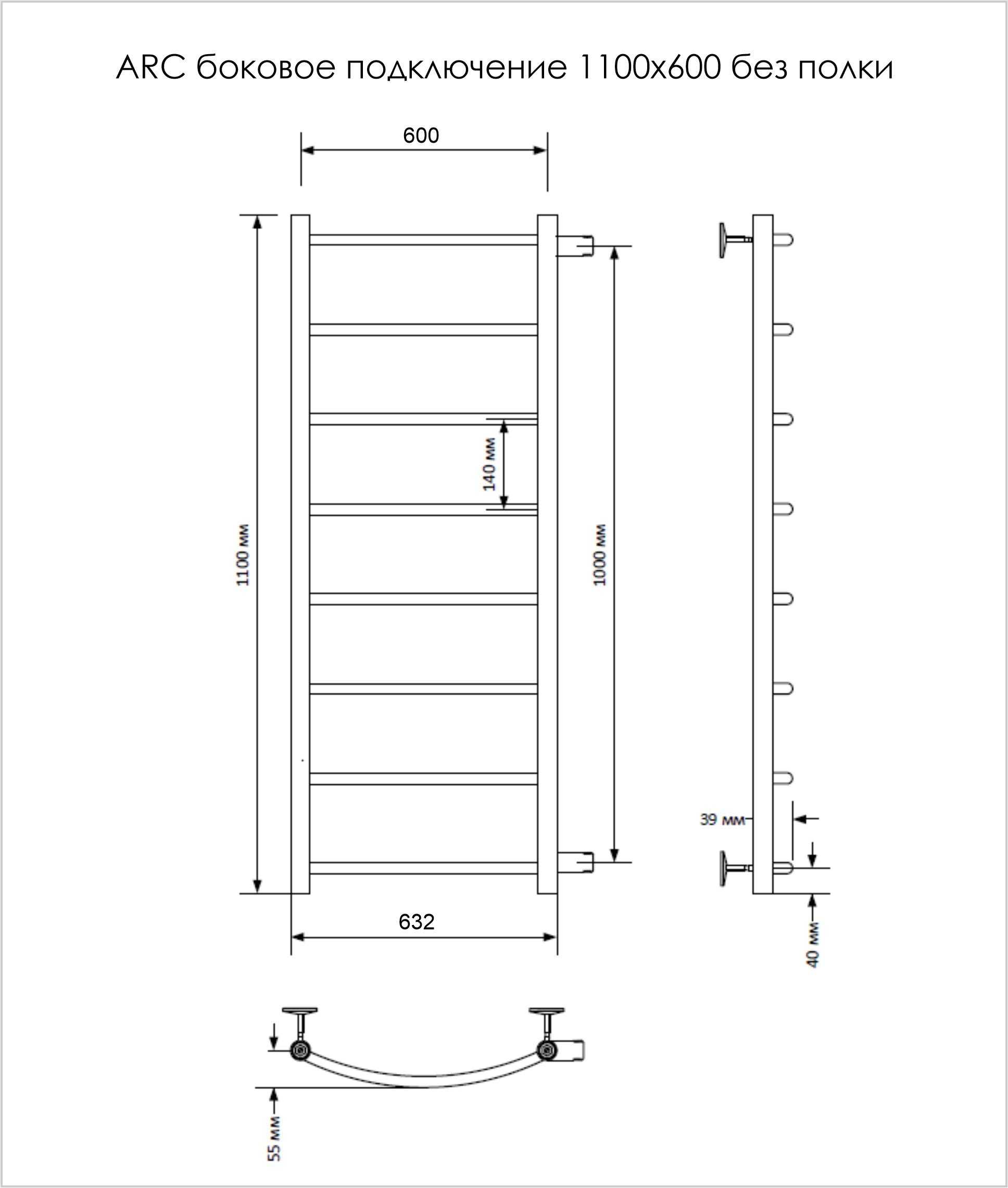 Полотенцесушитель водяной INDIGO Arc с боковым подключением в размере 1100х600 (ВхШ).