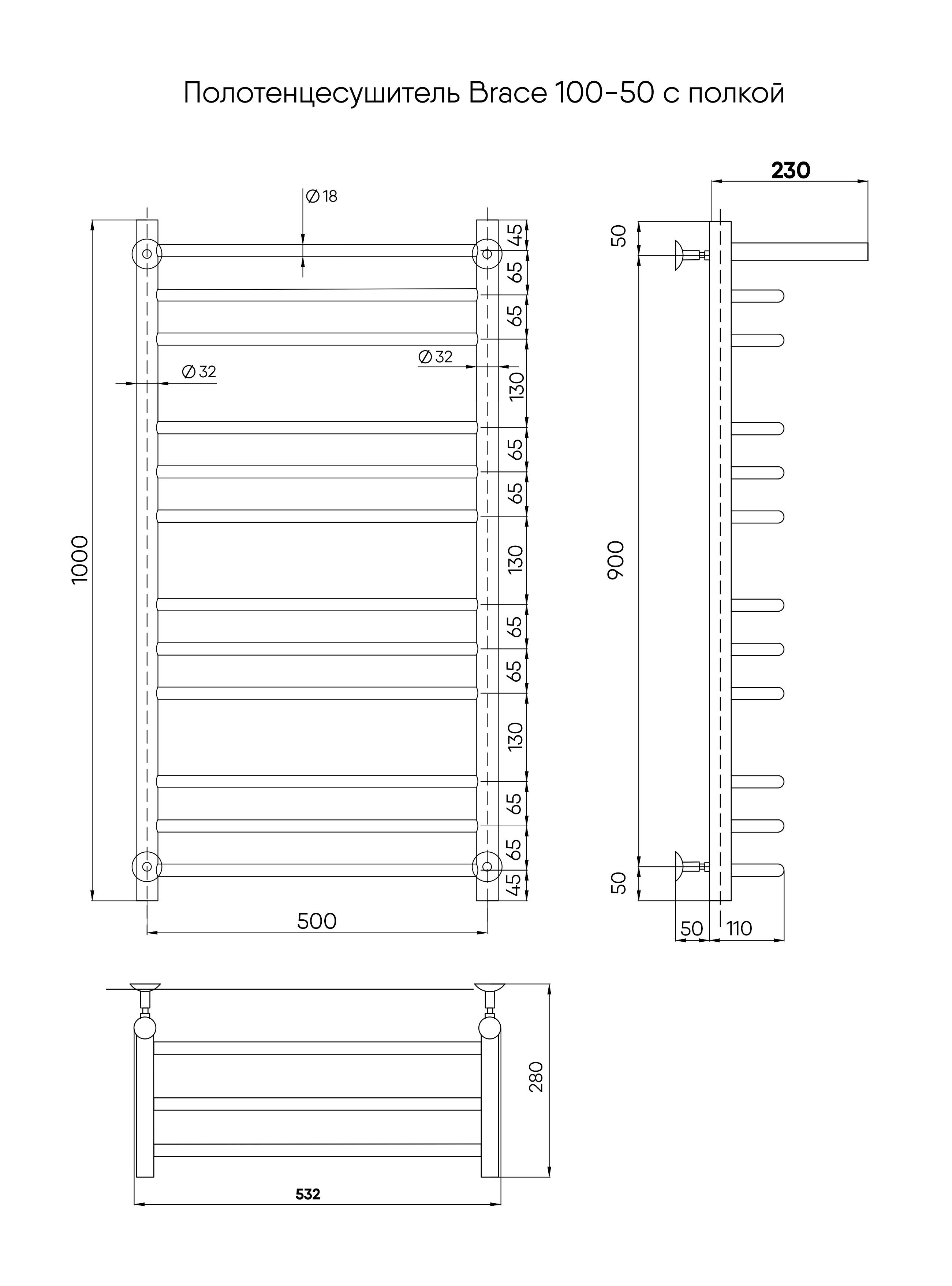 Полотенцесушитель водяной INDIGO Brace с полкой в размере 1000х500 (ВхШ) выбирают за его скобообразные перекладины и функциональность. Модель изготовлена из высококачественной нержавеющей стали. Качественная металлообработка в местах подключений обеспечивает плотное прилегание прокладки. Полотенцесушитель проходит тщательный этап полировки, поэтому обладает безупречным блеском. В комплектацию входит изделие, гарантийный талон, держатели 4 шт. Для монтажа необходимо отдельно приобрести нужные вам фитинги. Полотенцесушитель INDIGO Brace застрахован и имеет гарантию 5 лет.