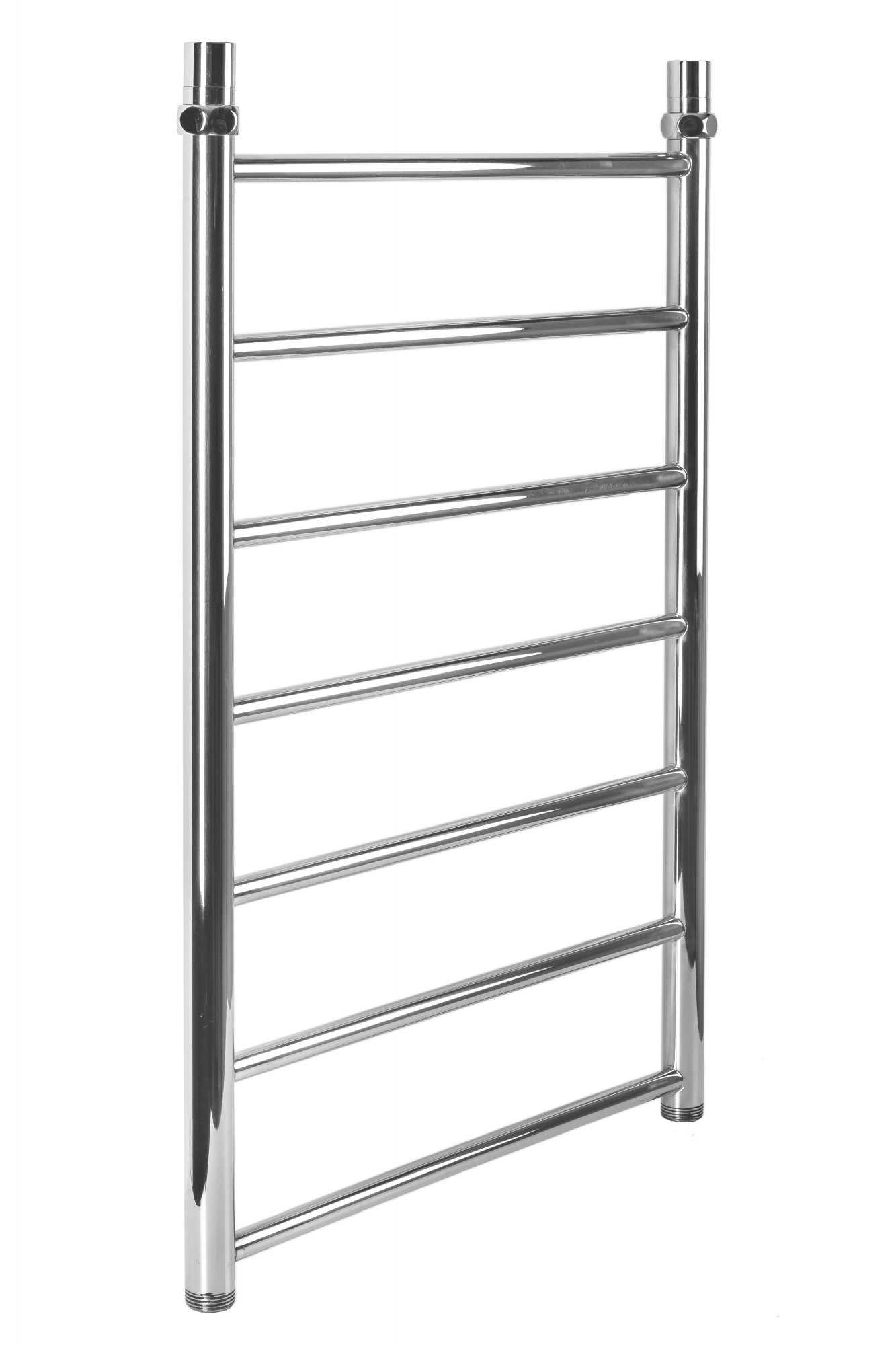 Стильный водяной полотенцесушитель INDIGO Line вида "Лесенка" с прямыми перекладинами, оснащен клапанами Маевского и колпачками. Изготовлен из стали марки AISI 304 с применением электроплазменной полировки методом аргонно-дуговой сварки согласно стандартам EN/ISO.
